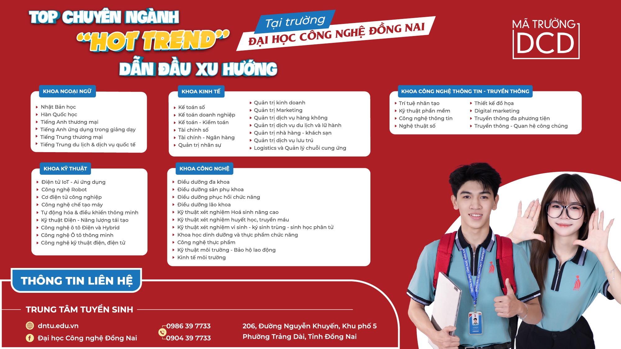 Chọn Trường Đại học Công nghệ Đồng Nai (DNTU) là chọn môi trường học tập hiện đại, chương trình đào tạo gắn liền với thực tiễn và đội ngũ giảng viên tâm huyết.