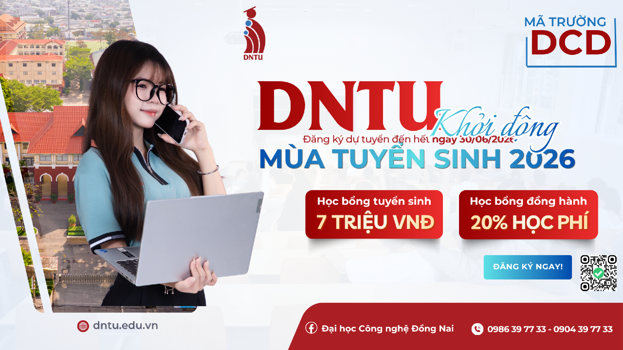 Trường Đại học Công nghệ Đồng Nai thành lập trên niềm tin mãnh liệt “Hiền tài là nguyên khí của quốc gia”. Là nơi ươm mầm những hoài bão lớn lao, nơi mỗi sinh viên có thể phát huy tối đa tài năng, sáng tạo và khát vọng cống hiến cho sự phát triển của xã hội. Với môi trường học tập hiện đại, đội ngũ giảng viên tâm huyết và chương trình đào tạo tiên tiến, DNTU không chỉ trang bị kiến thức chuyên môn mà còn định hướng giá trị sống, tư duy đổi mới và sáng tạo, giúp người học trở thành những công dân toàn cầu đi đầu về công nghệ, tạo được dấu ấn riêng biệt, sẵn sàng đón nhận những cơ hội và thử thách mới.