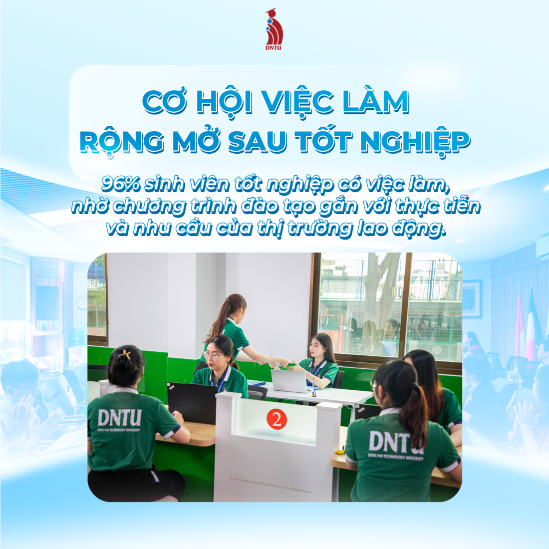 Statistics show that 96% of DNTU graduates secure employment shortly after graduation. By studying in a region with immense recruitment needs, students gain a strategic advantage in accessing jobs across various fields—ranging from engineering and technology to economics and services—that align with their personal abilities and social trends.