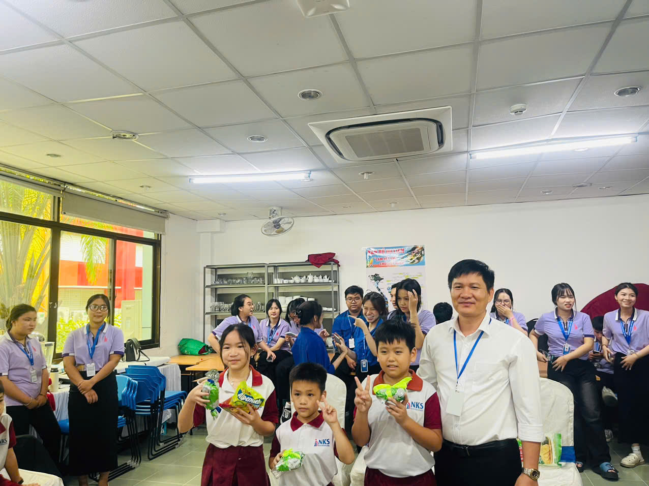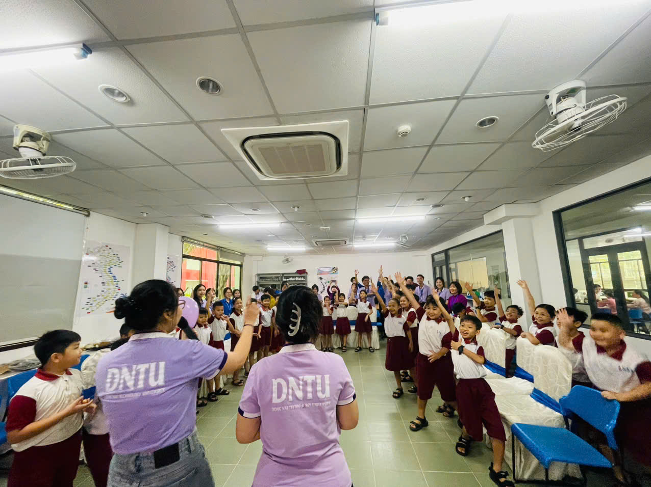Bên cạnh đó, sinh viên ngành Quản trị Dịch vụ Du lịch và Lữ hành đảm nhận vai trò tổ chức, hoạt náo và điều phối chương trình, mang đến không khí vui tươi, những trò chơi sôi nổi và nhiều kỷ niệm đáng nhớ cho các em nhỏ.