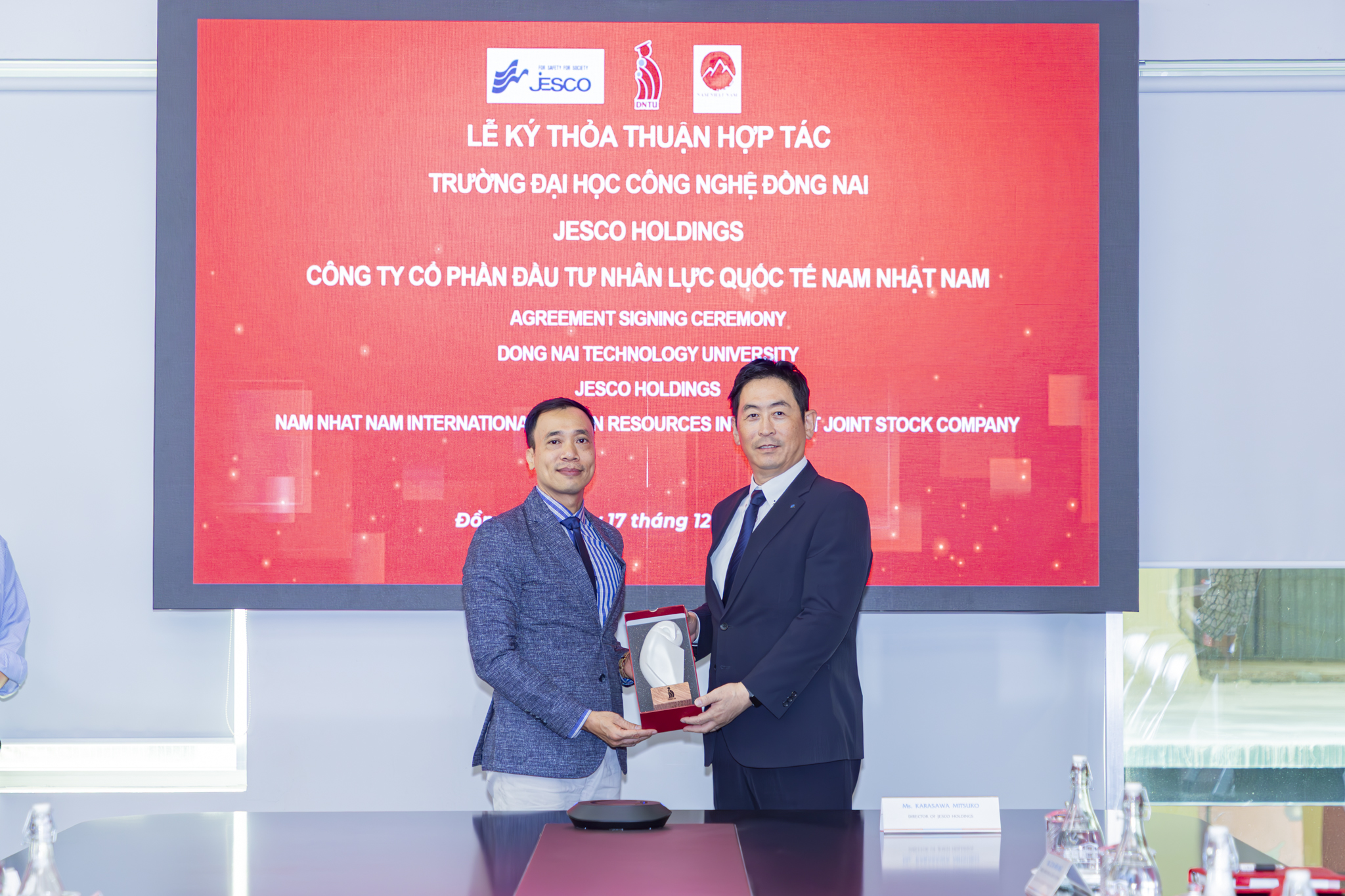 Trong khuôn khổ hợp tác, Trường Đại học Công nghệ Đồng Nai, Tập đoàn JESCO Holdings và Nhật Ngữ Nam Nhật Nam phối hợp triển khai các chương trình đào tạo nguồn nhân lực gắn với nhu cầu thực tế của doanh nghiệp, đồng thời mở rộng cơ hội tuyển dụng sinh viên DNTU làm việc tại các doanh nghiệp Nhật Bản tại Việt Nam và Nhật Bản.