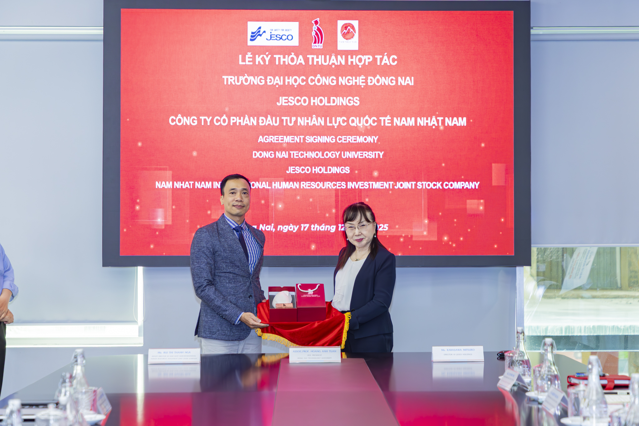Ngày 17/12/2025, tại Trường Đại học Công nghệ Đồng Nai (DNTU) đã diễn ra Lễ ký kết thỏa thuận hợp tác giữa Trường Đại học Công nghệ Đồng Nai, Tập đoàn JESCO Holdings (Nhật Bản) và Công ty Cổ phần Đầu tư Nhân lực Quốc tế Nam Nhật Nam. Sự kiện đánh dấu bước phát triển mới trong định hướng đào tạo gắn với doanh nghiệp và hội nhập quốc tế của Nhà trường.