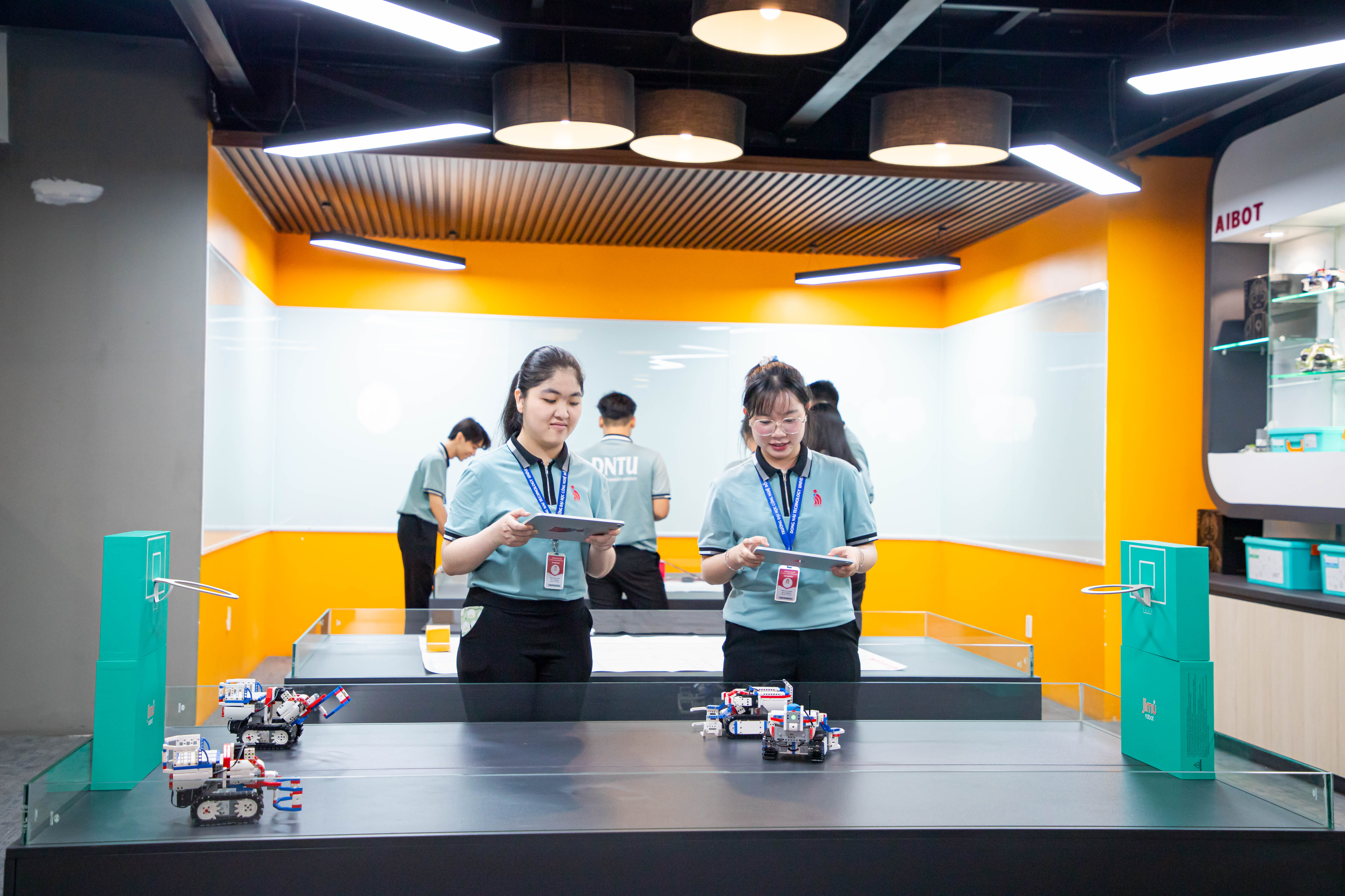 Tiếp cận công nghệ tiên tiến: Sinh viên được tham gia các dự án thực tế tại Trung tâm nghiên cứu AIBOT, đặc biệt trong lĩnh vực trí tuệ nhân tạo và robot, từ đó phát triển tư duy sáng tạo và năng lực ứng dụng.