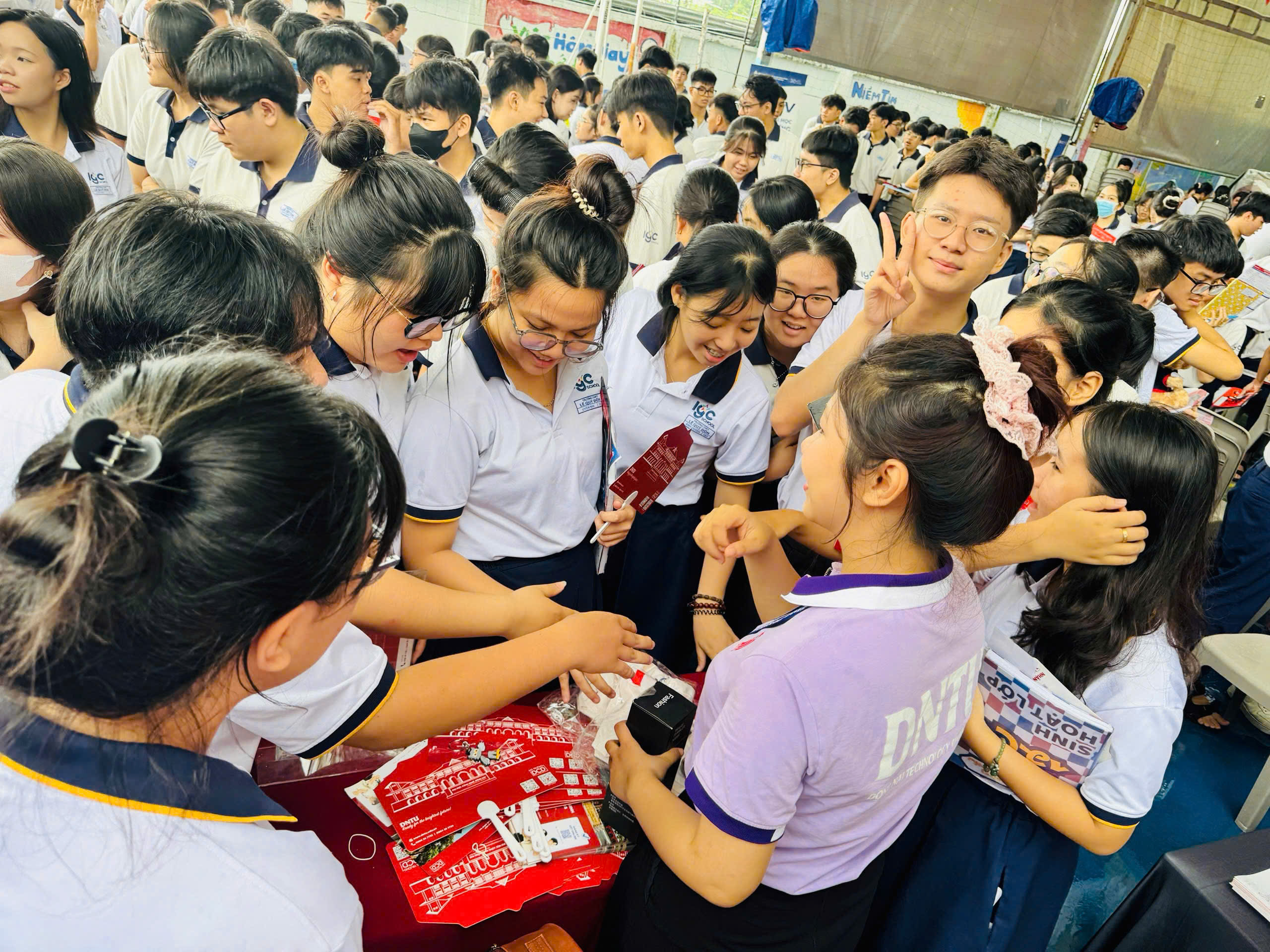 Ở khu vực tư vấn, “biệt đội áo đỏ” Nhà DNTU đã nhanh chóng thu hút sự chú ý của đông đảo học sinh, đặc biệt là các bạn lớp 12 đang chuẩn bị cho giai đoạn quan trọng sắp tới. Không chỉ được giải đáp chi tiết về ngành học, cơ hội học bổng hấp dẫn, các bạn còn được truyền cảm hứng để chủ động hơn trong việc lựa chọn hướng đi cho tương lai. Không khí sôi nổi, cởi mở và tràn đầy năng lượng khiến buổi gặp gỡ đầu tiên của hành trình thêm phần đáng nhớ.