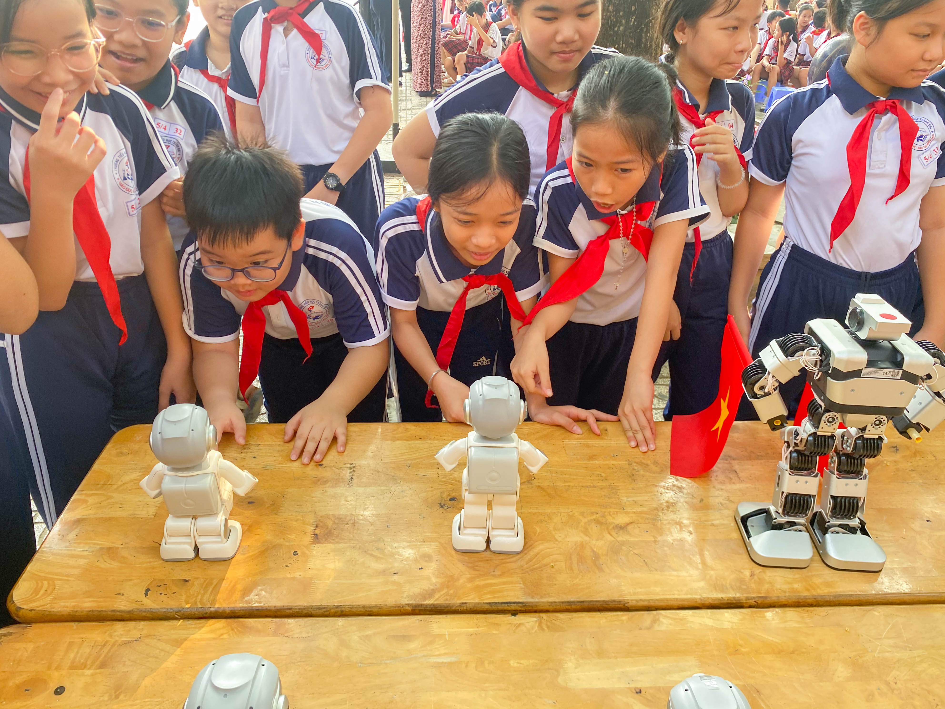 Trong khuôn khổ chương trình, các em học sinh đã có cơ hội tiếp cận trực tiếp với những công nghệ hiện đại thông qua việc tương tác với các dòng robot hình người như Mini Alpha, Yanshee; đồng thời khám phá các ứng dụng công nghệ với robot UGOT. Đặc biệt, hoạt động điều khiển và thi đấu robot Jimu đã tạo nên bầu không khí sôi nổi, hào hứng, thu hút sự tham gia tích cực của đông đảo học sinh.