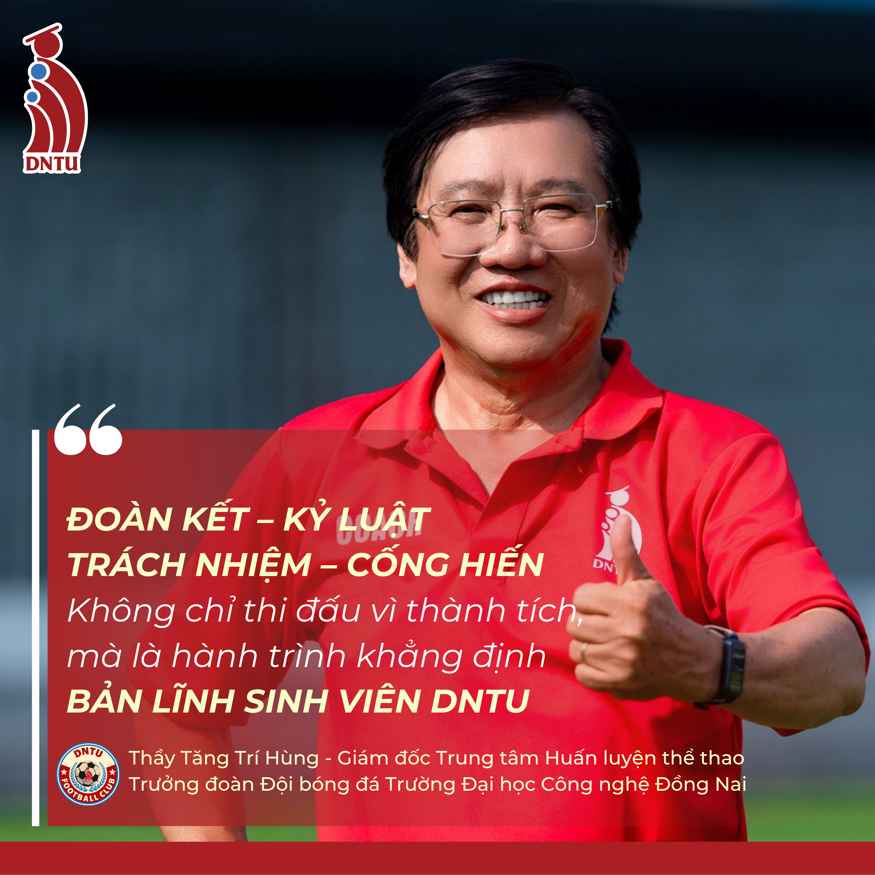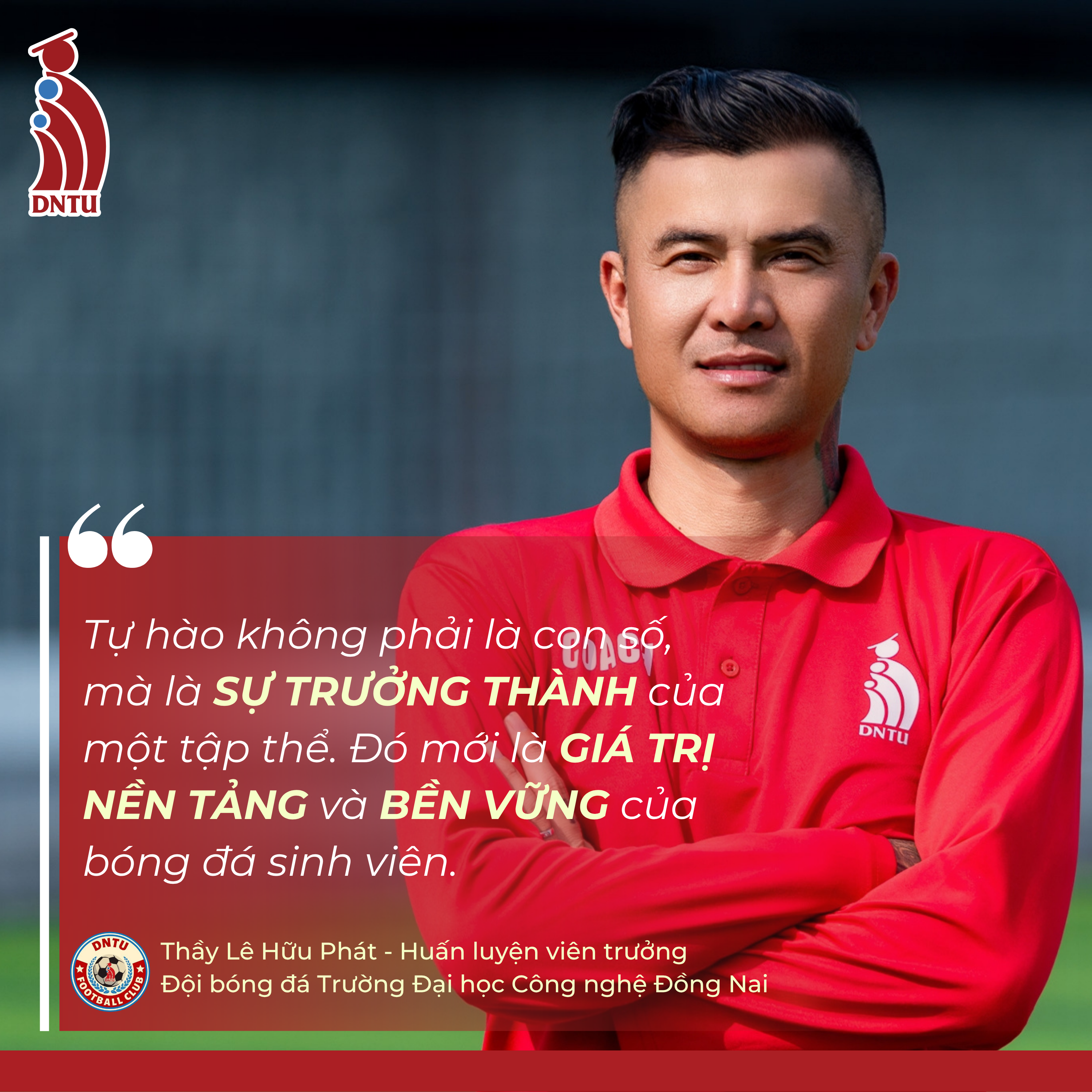 Từ những buổi tập âm thầm đến những trận đấu trên sân chơi toàn quốc, ban huấn luyện vẫn luôn đứng phía sau, lặng lẽ dõi theo từng bước chạy của các học trò. Và chính sự tận tâm ấy đã góp phần tạo nên một DNTU FC giàu nhiệt huyết – nơi bóng đá không chỉ là môn thể thao, mà còn là hành trình của đam mê, tình thầy trò và tinh thần sinh viên của Trường Đại học Công nghệ Đồng Nai.