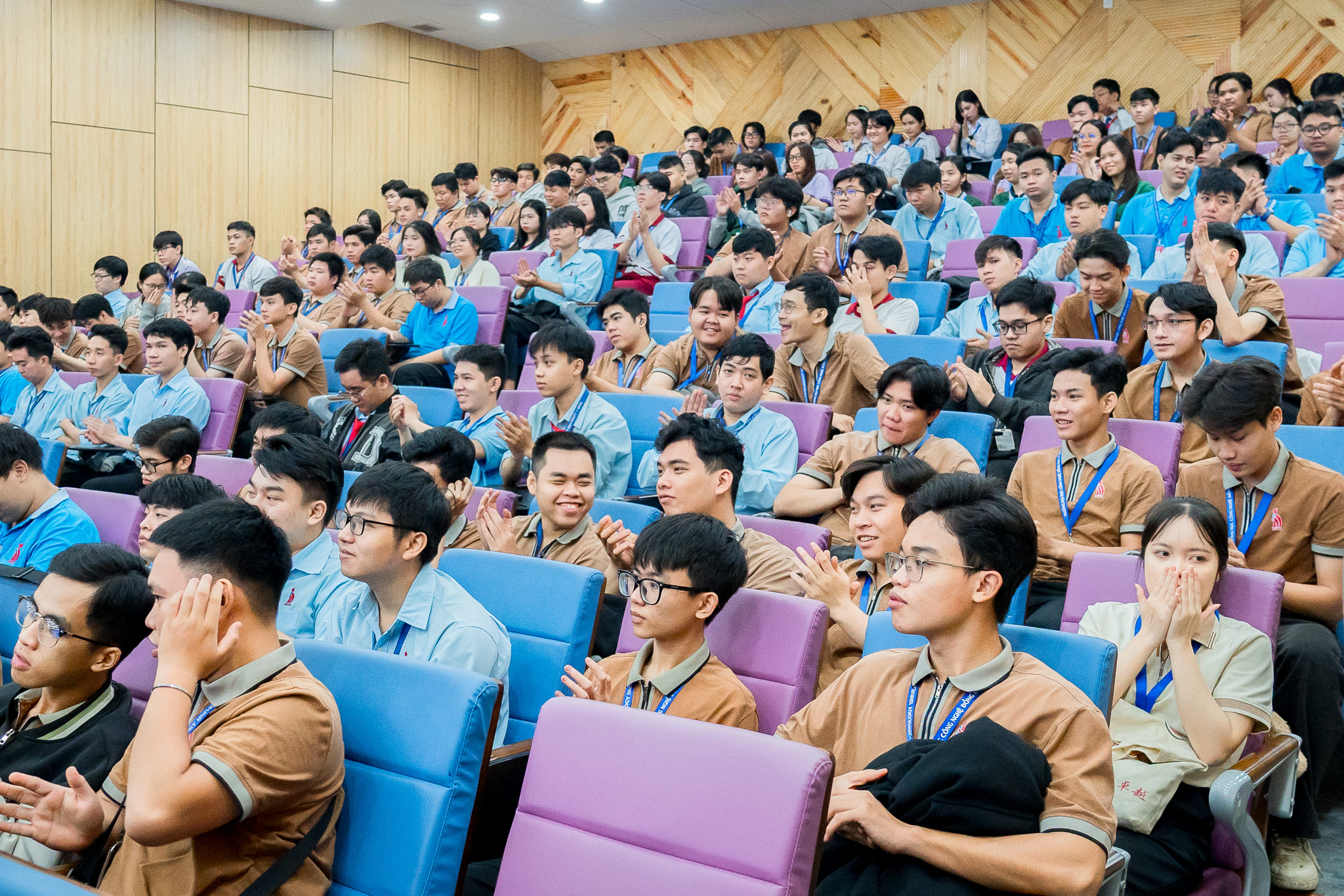Ảnh: Đông đảo sinh viên Trường Đại học Công nghệ Đồng Nai quan tâm đến xu hướng ngành Logistics tại buổi hội thảo
