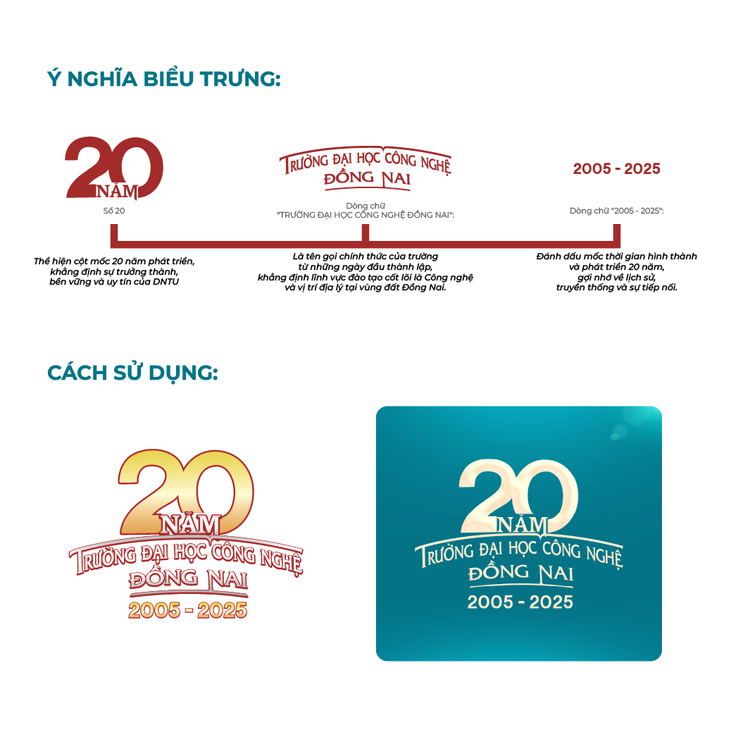Biểu trưng 20 năm được công bố như một biểu tượng đặc biệt, đánh dấu khoảnh khắc chuyển giao quan trọng trong hành trình phát triển của Trường Đại học Công nghệ Đồng Nai. Không chỉ đơn thuần là một dấu hiệu nhận diện, Biểu trưng này còn là lời tri ân dành cho chặng đường đã qua.