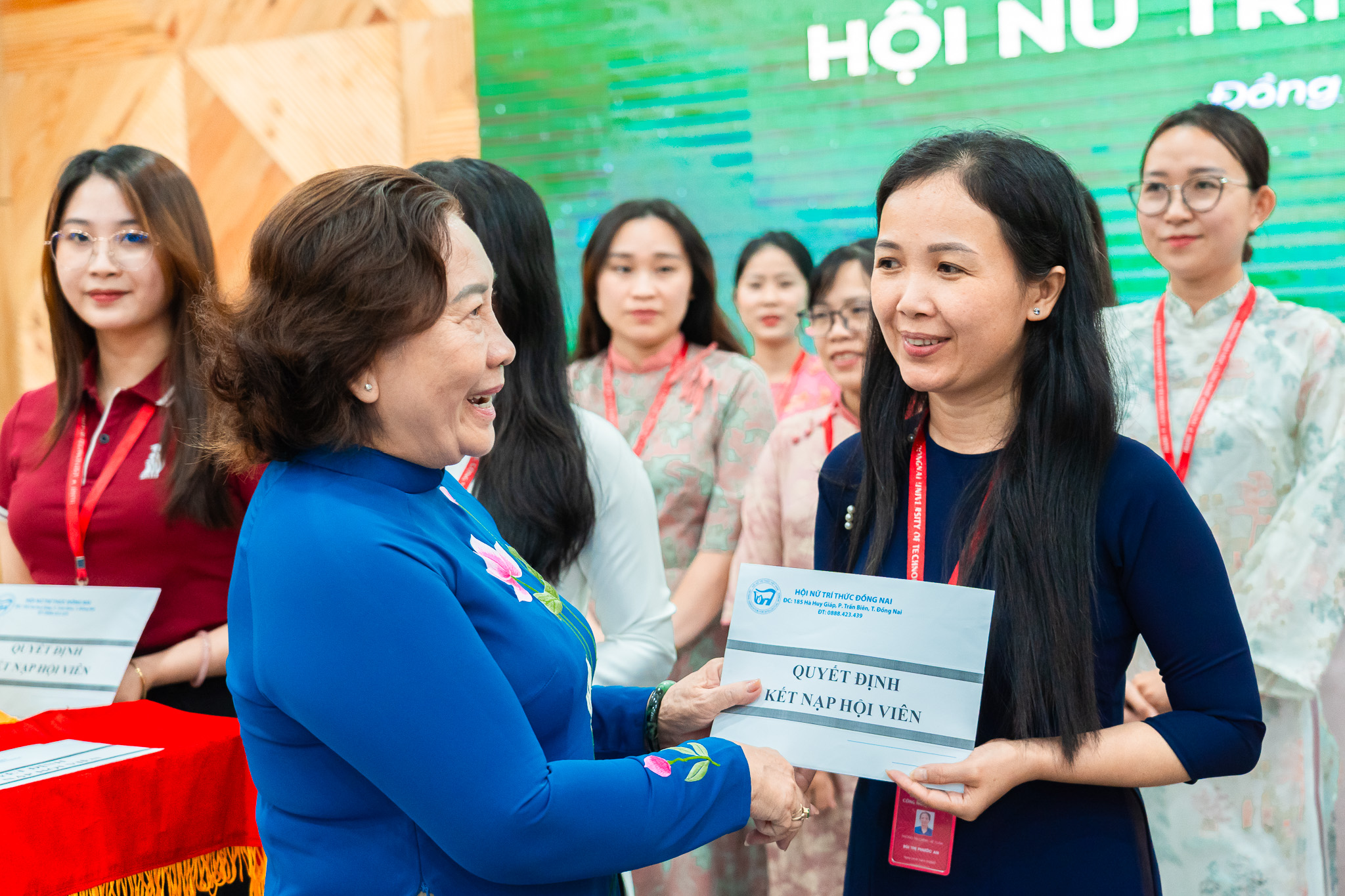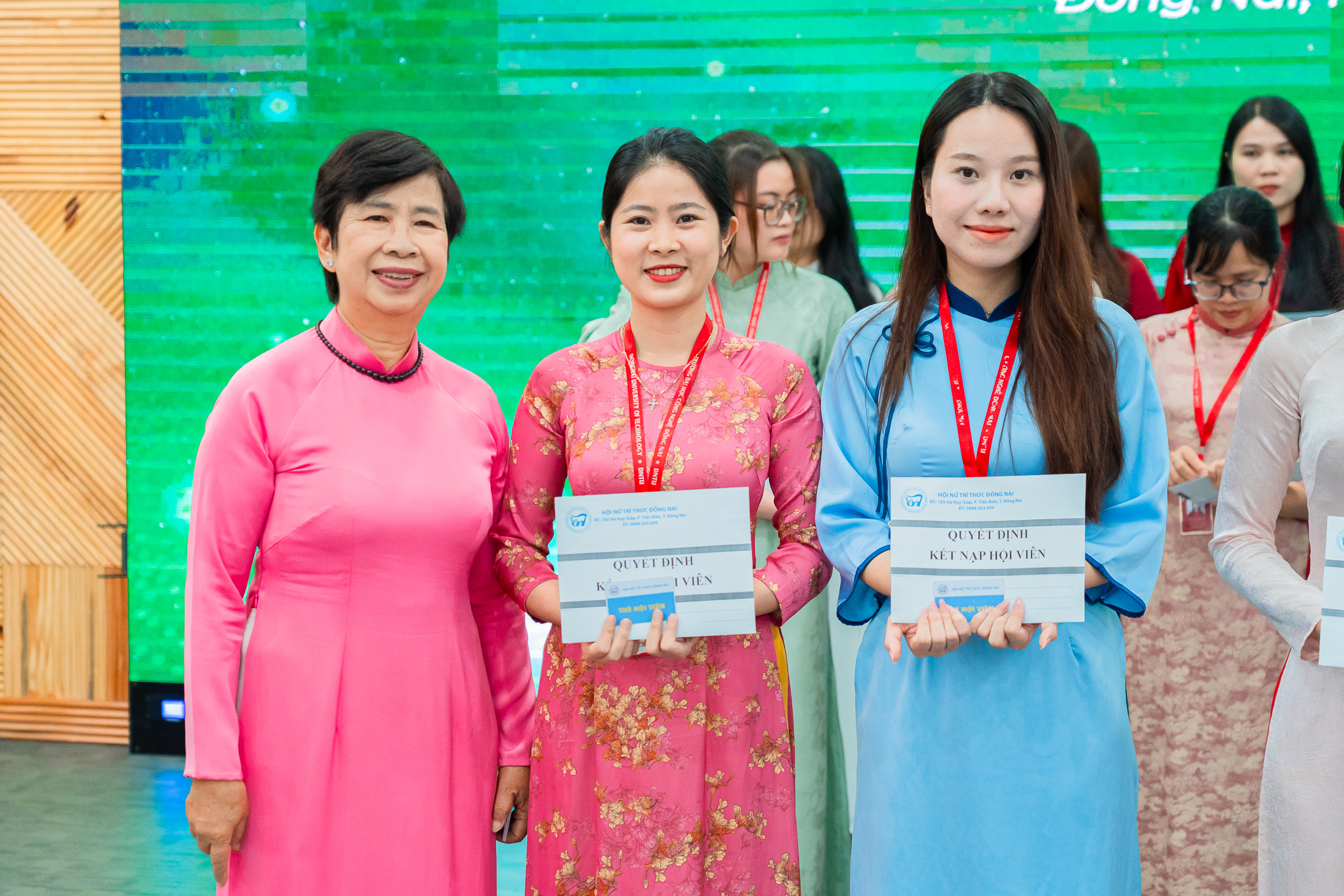 Một điểm nhấn quan trọng của chương trình là lễ kết nạp 30 nữ cán bộ, giảng viên Trường Đại học Công nghệ Đồng Nai vào Hội Nữ Trí thức tỉnh Đồng Nai. Việc kết nạp các hội viên mới không chỉ góp phần tăng cường lực lượng nữ trí thức của tỉnh mà còn thể hiện sự ghi nhận đối với những đóng góp của đội ngũ nữ giảng viên, cán bộ DNTU trong công tác đào tạo, nghiên cứu khoa học và phục vụ cộng đồng.