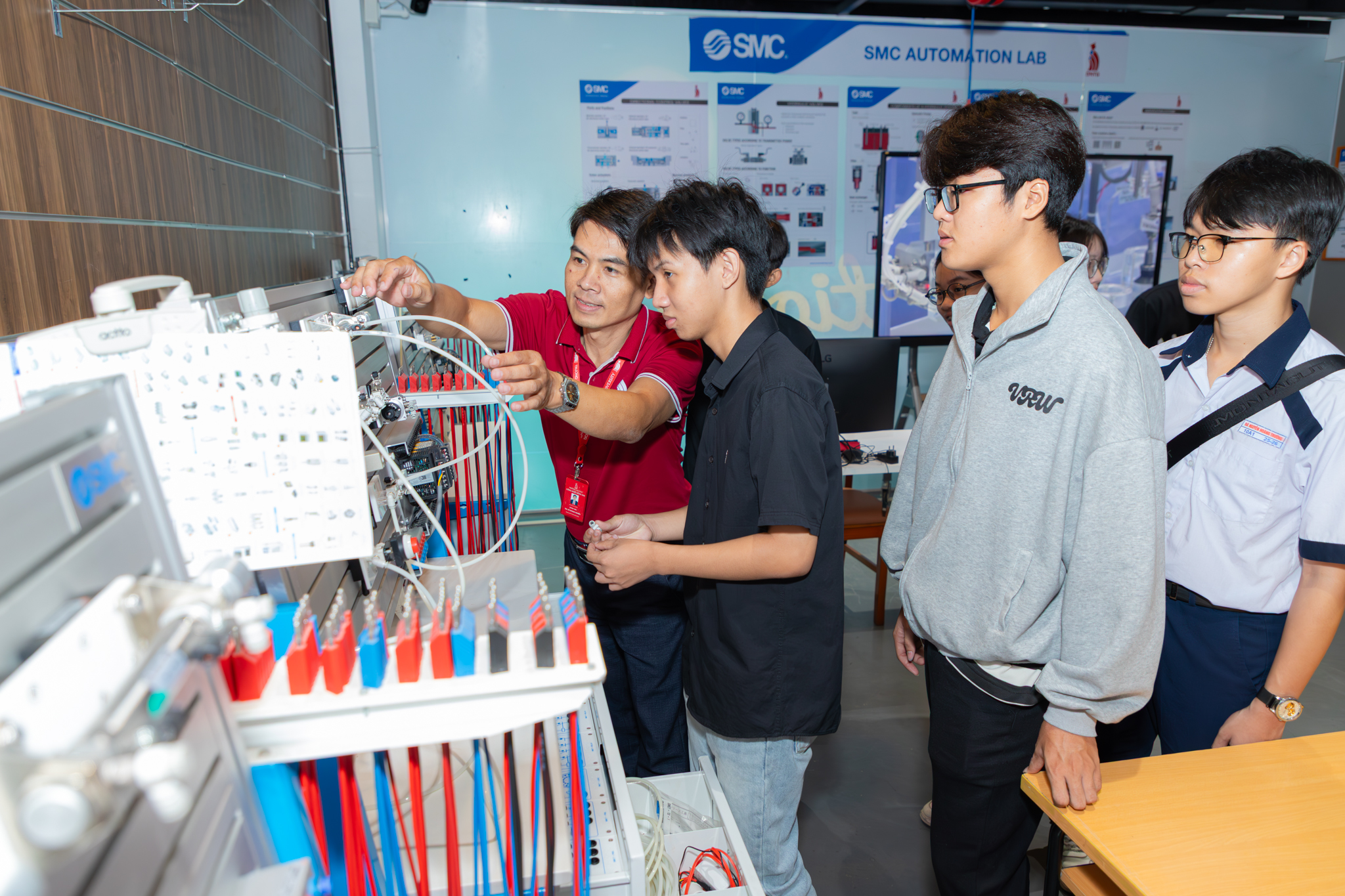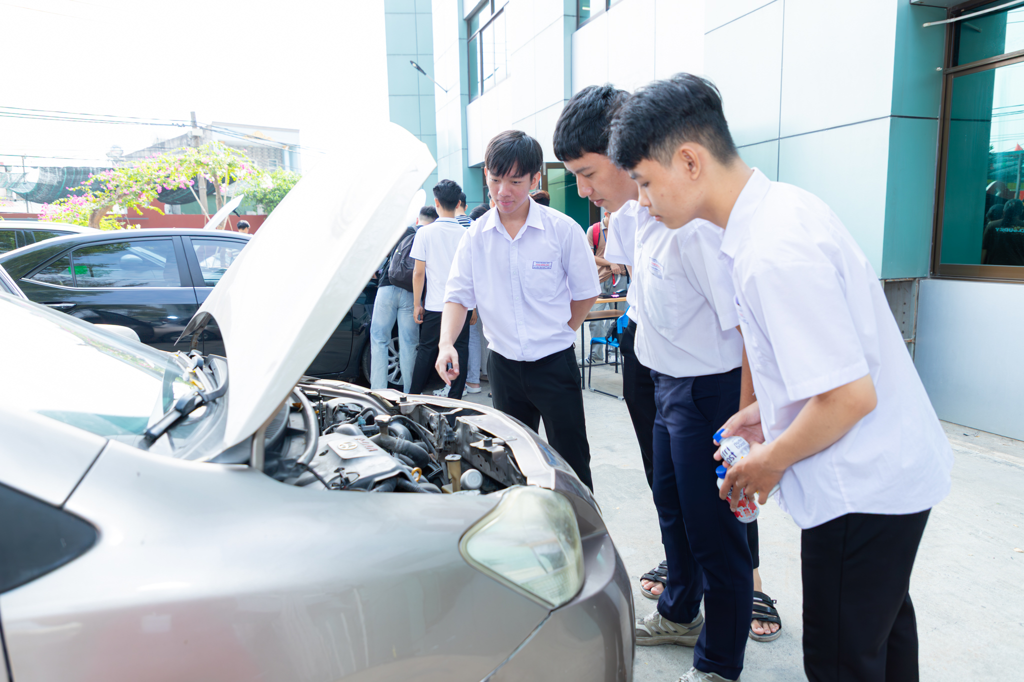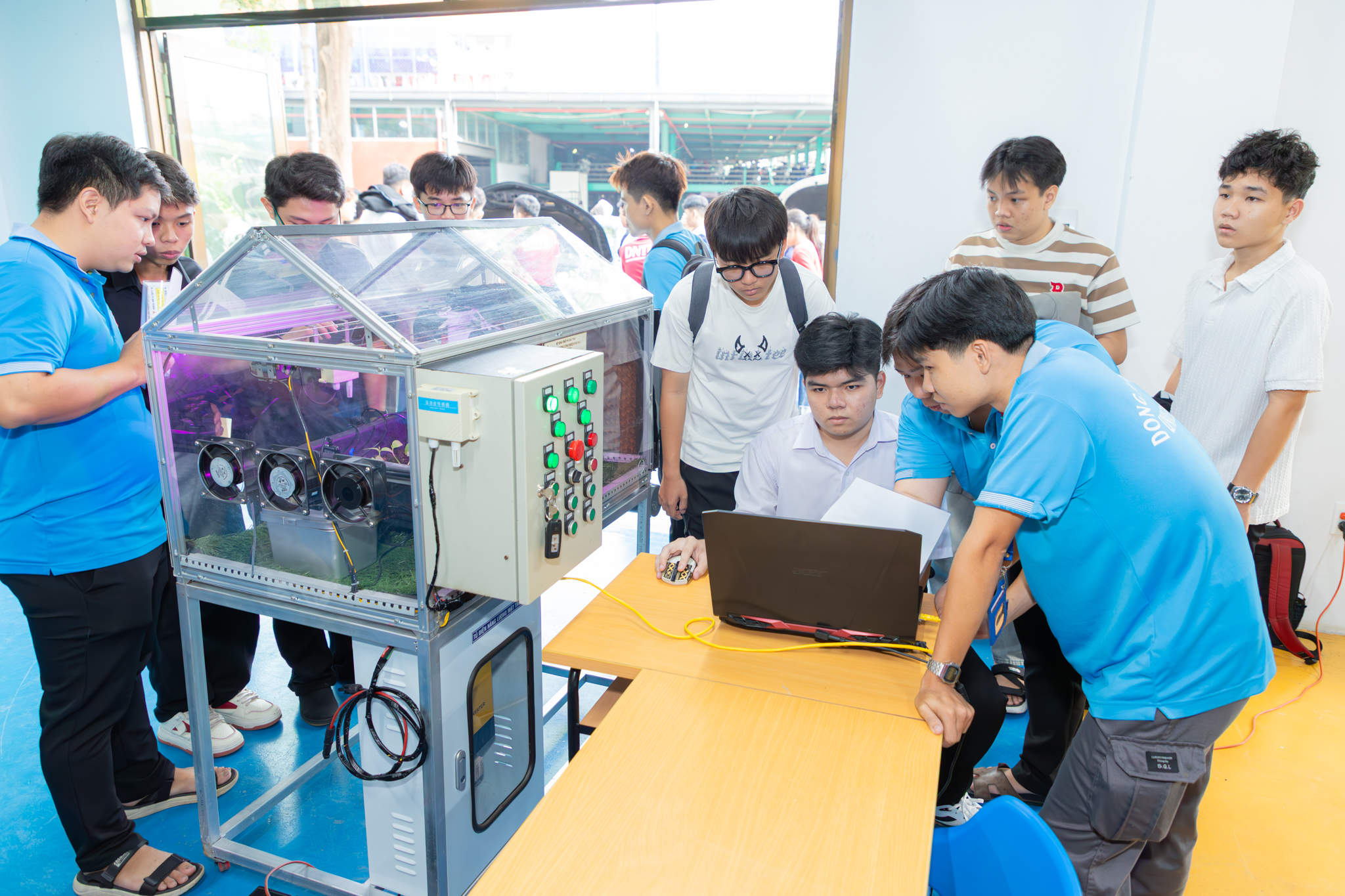 Tại khu trải nghiệm, học sinh được trực tiếp khám phá nhiều không gian thực hành và mô hình công nghệ đặc trưng của nhóm ngành kỹ thuật. Các hoạt động nổi bật bao gồm: tìm hiểu các mô hình sáng tạo từ CLB SRC, khám phá hệ thống tự động hóa tại SMC – Automation Lab, trải nghiệm ứng dụng năng lượng tái tạo trong kỹ thuật, tiếp cận công nghệ thực tế ảo (VR) cũng như quan sát quy trình thực hành máy móc theo phương pháp Kaizen.