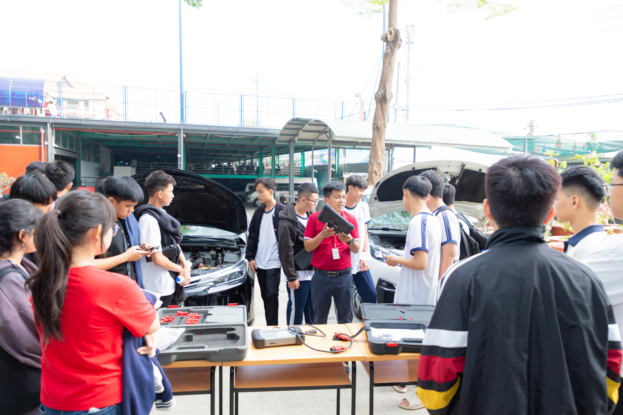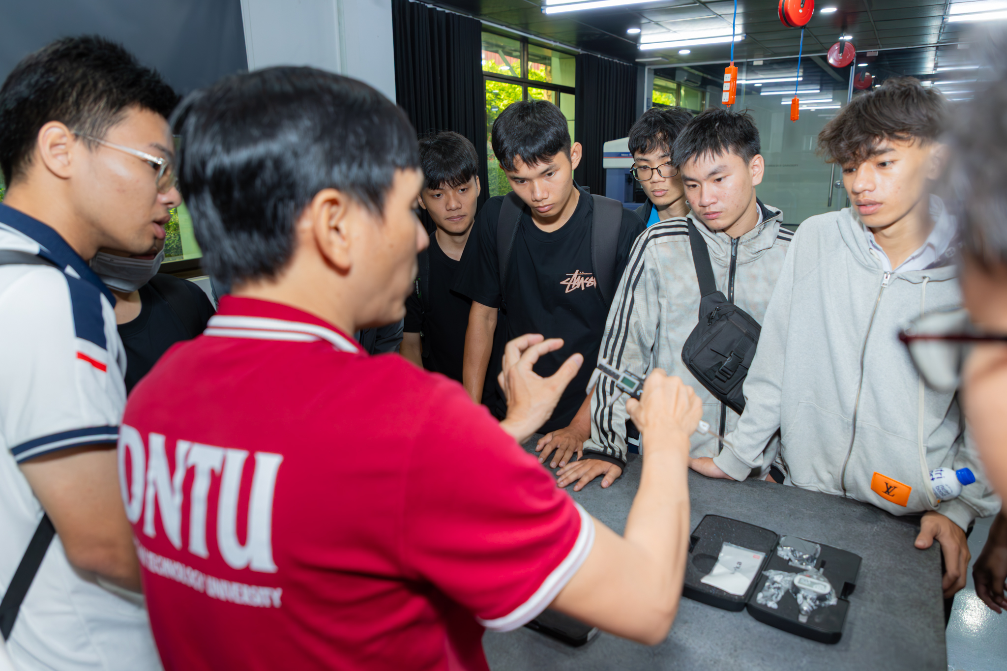 Không chỉ dừng lại ở việc quan sát, học sinh còn có cơ hội trao đổi với giảng viên và sinh viên để hiểu rõ hơn về cách các hệ thống kỹ thuật được vận hành trong thực tế. Những trải nghiệm này giúp các bạn hình dung rõ hơn về môi trường học tập, phương pháp đào tạo cũng như cơ hội nghề nghiệp trong lĩnh vực kỹ thuật.