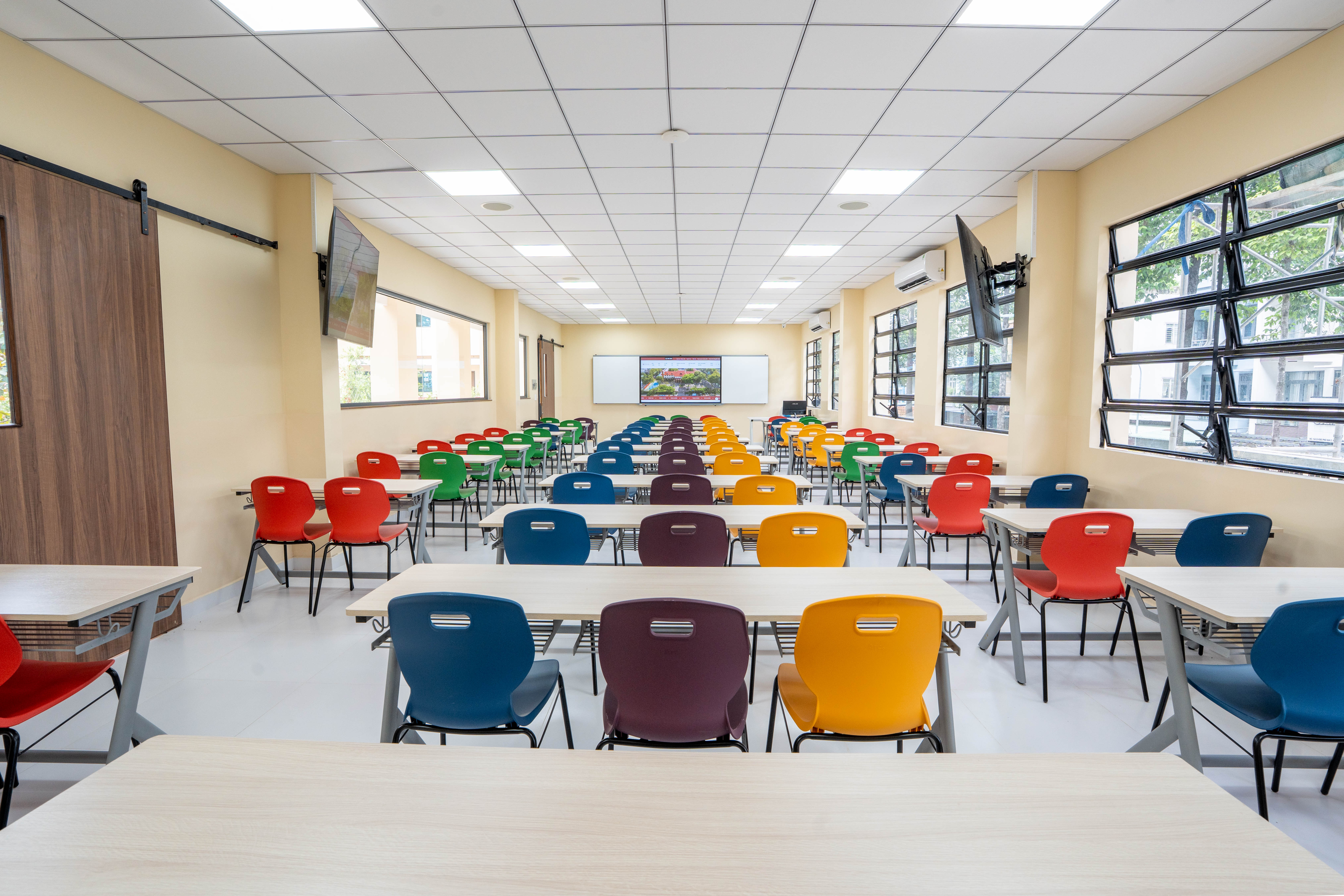 Với tổng diện tích sử dụng 4.510m2, tòa nhà B gồm 32 phòng học lý thuyết và thực hành (bố trí từ 80 đến hơn 100 chỗ ngồi), được trang bị hệ thống ánh sáng tiêu chuẩn, màn hình trình chiếu, thiết bị âm thanh, hình ảnh đồng bộ cùng khu vực làm việc, sinh hoạt học thuật và không gian tự học dành cho sinh viên.