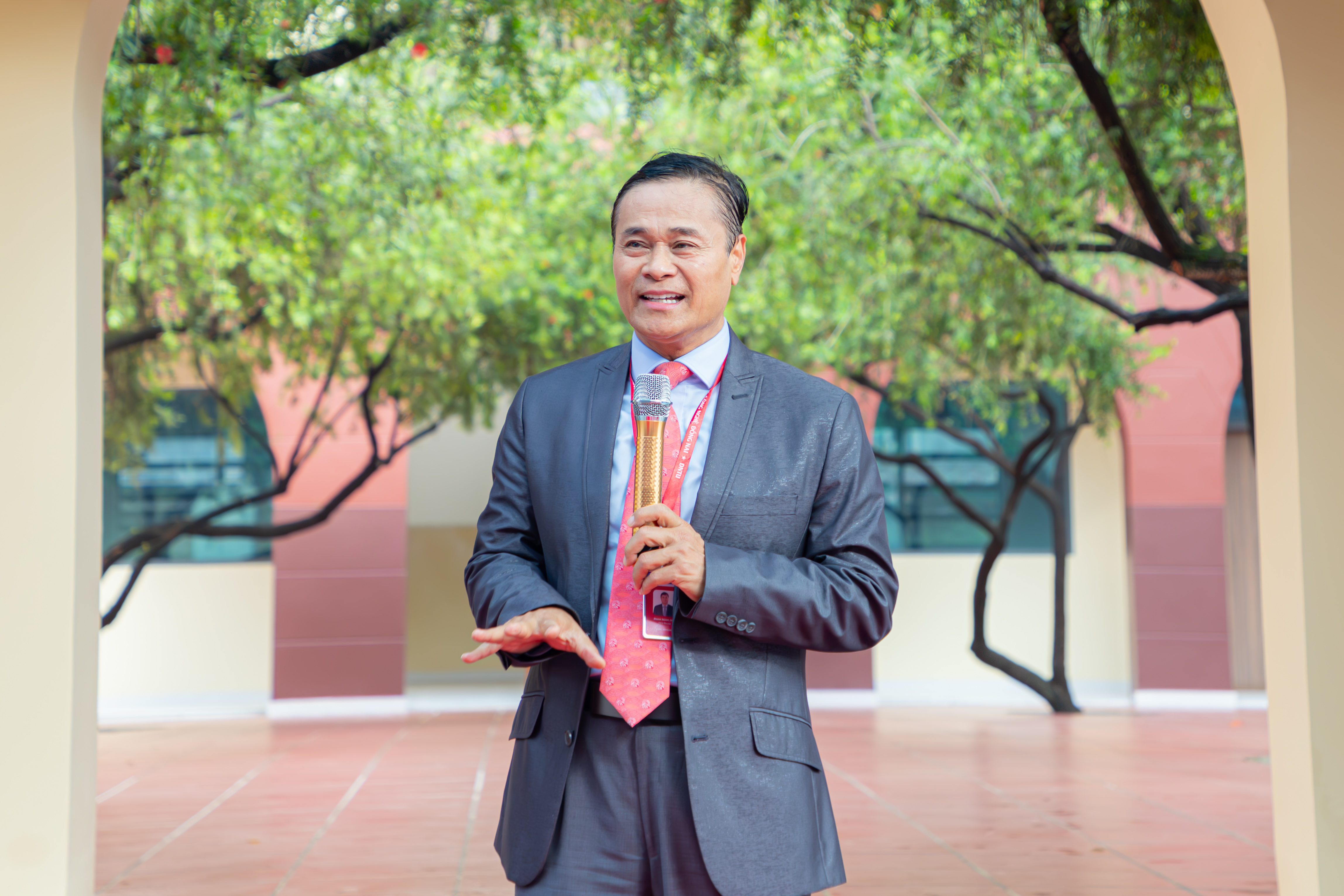 Ảnh: Thầy Phan Ngọc Sơn - Nhà sáng lập, cố vấn cao cấp của Hội đồng trường Đại học Công nghệ Đồng Nai phát biểu