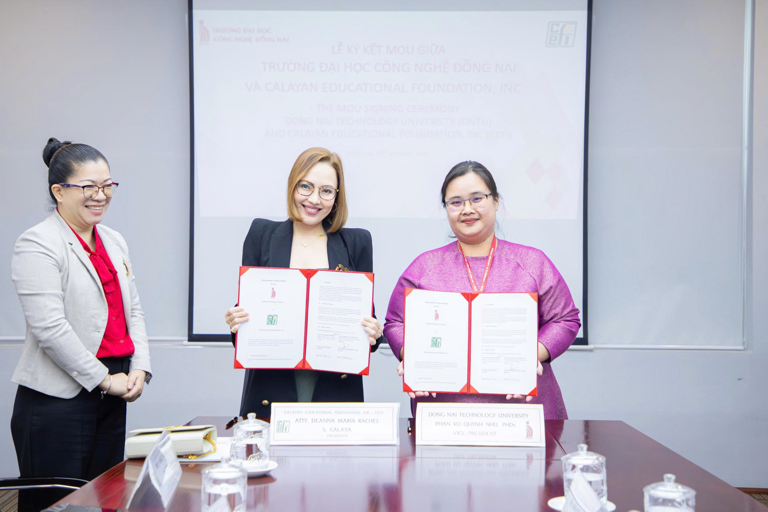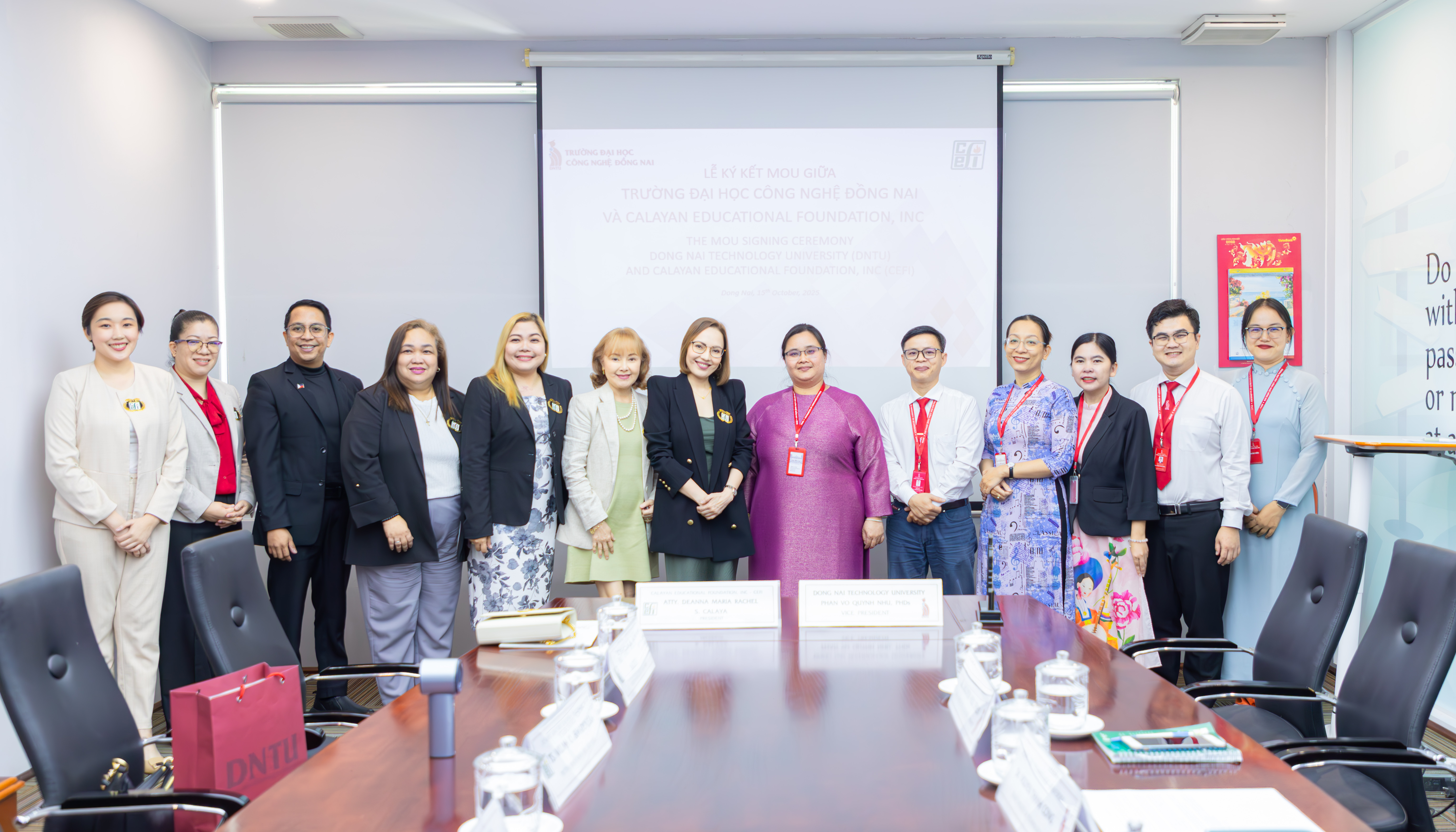 Ngày 15/10/2025, Trường Đại học Công nghệ Đồng Nai vinh dự đón tiếp đoàn đại biểu Đoàn Tổ chức giáo dục Calayan, Philippines (Calayan Educational Foundation, Inc - CEFI) đến thăm và làm việc tại trường. Chuyến thăm diễn ra trong không khí trang trọng, thể hiện tinh thần hợp tác, cởi mở và hướng tới sự phát triển bền vững trong giáo dục.