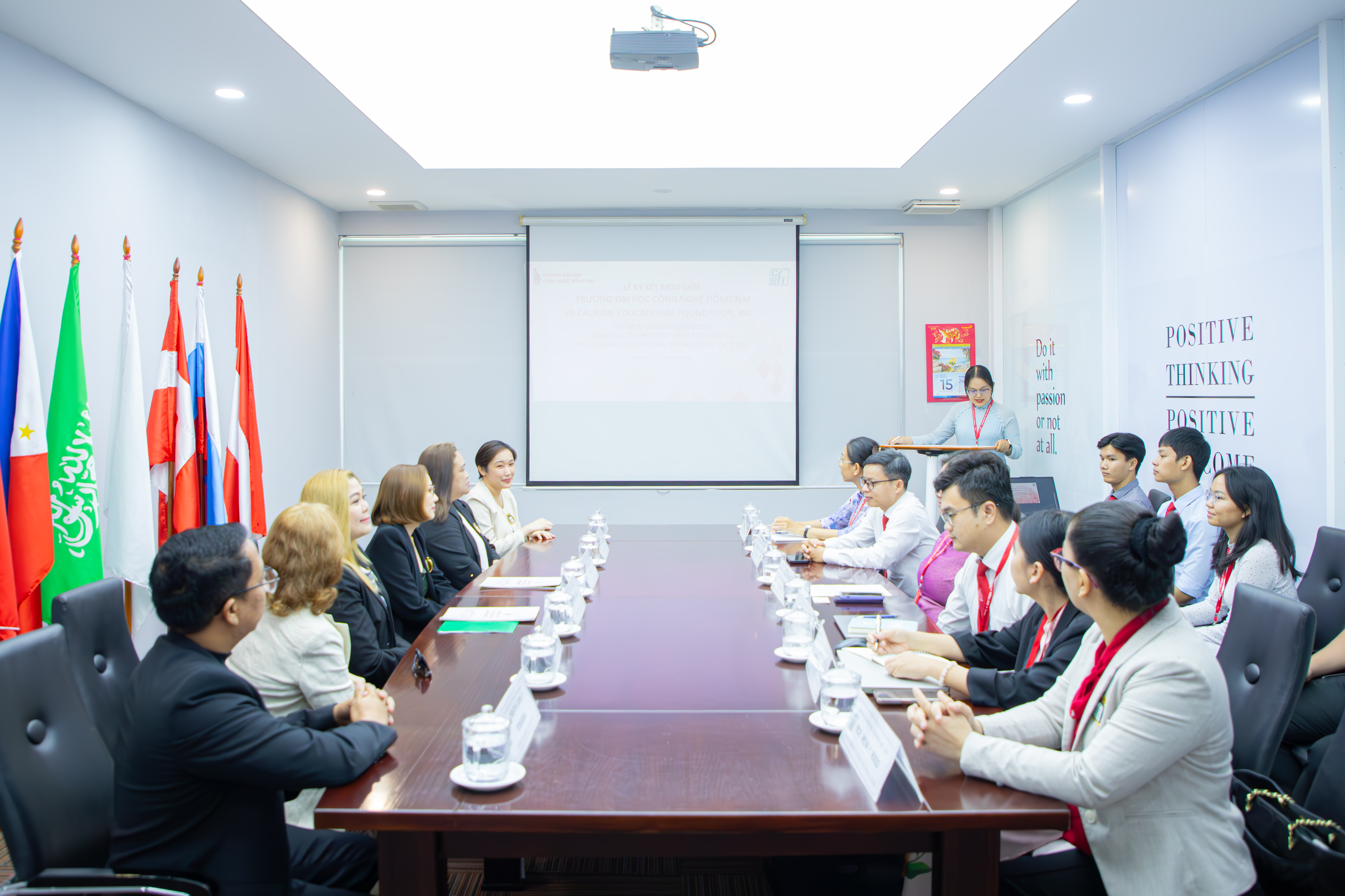 Tại buổi làm việc, đại diện lãnh đạo hai bên đã cùng trao đổi về các định hướng hợp tác chiến lược trong thời gian tới, tập trung vào những lĩnh vực trọng tâm như: trao đổi học thuật, nghiên cứu khoa học và phát triển các chương trình đào tạo quốc tế. Đặc biệt, hai bên đã ký kết Biên bản ghi nhớ hợp tác (MoU).