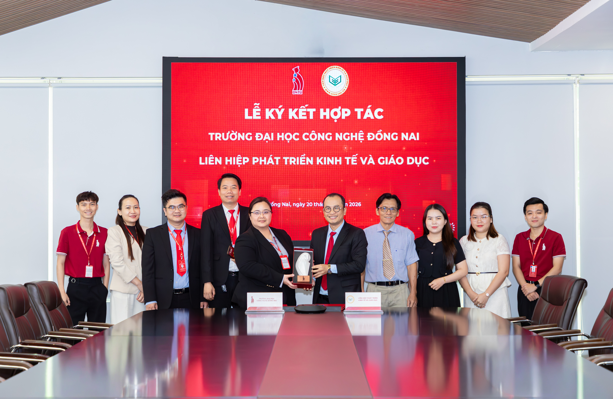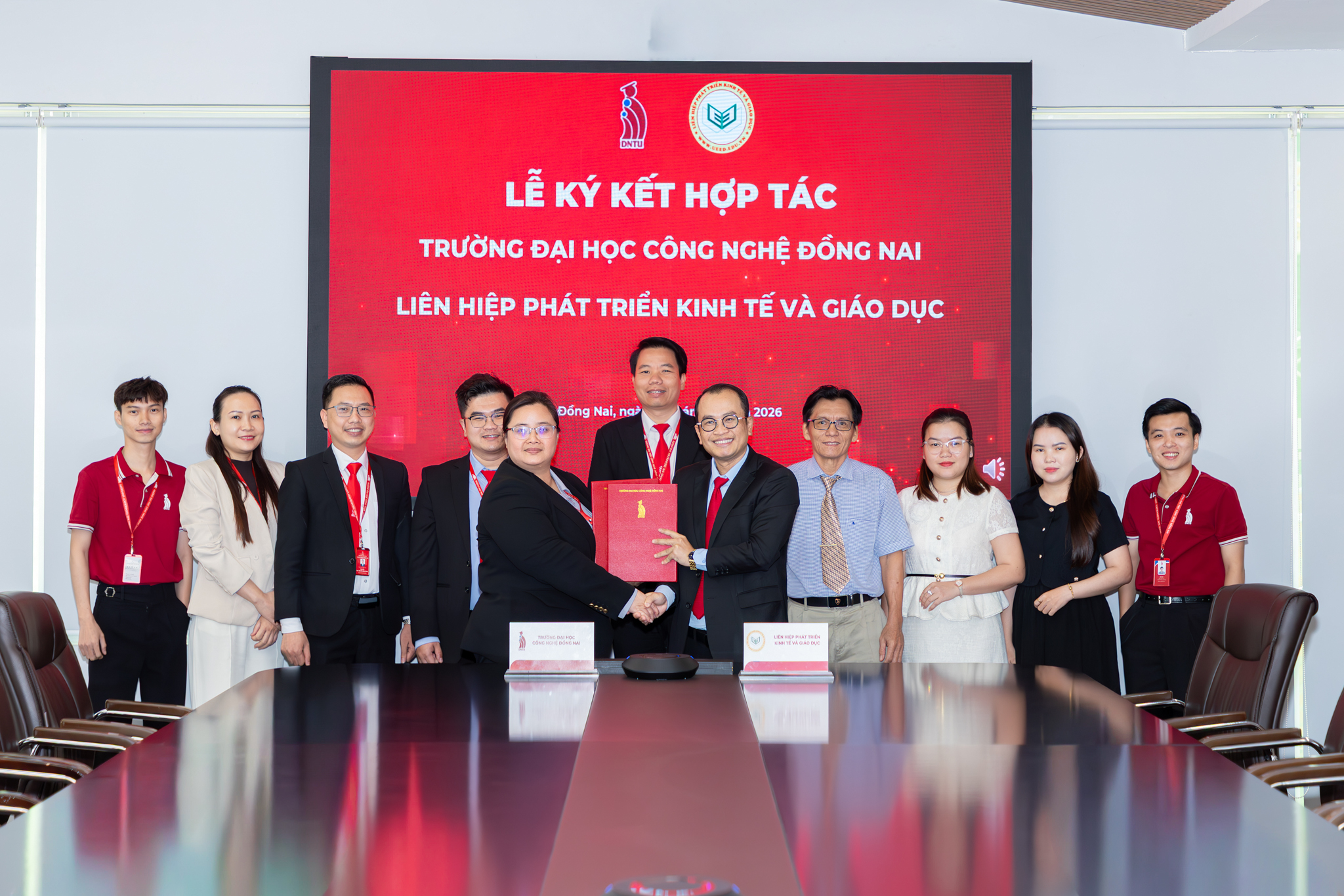 Sáng ngày 20/01/2026, Trường Đại học Công nghệ Đồng Nai đã có buổi làm việc và ký kết hợp tác với Liên hiệp Phát triển Kinh tế và Giáo dục (UEED) trong lĩnh vực tuyển sinh các hệ đào tạo. Buổi gặp mặt diễn ra trong không khí thân mật, cởi mở, thể hiện tinh thần đồng hành vì mục tiêu chung là mở rộng cơ hội học tập cho người học ở nhiều độ tuổi và hoàn cảnh khác nhau.