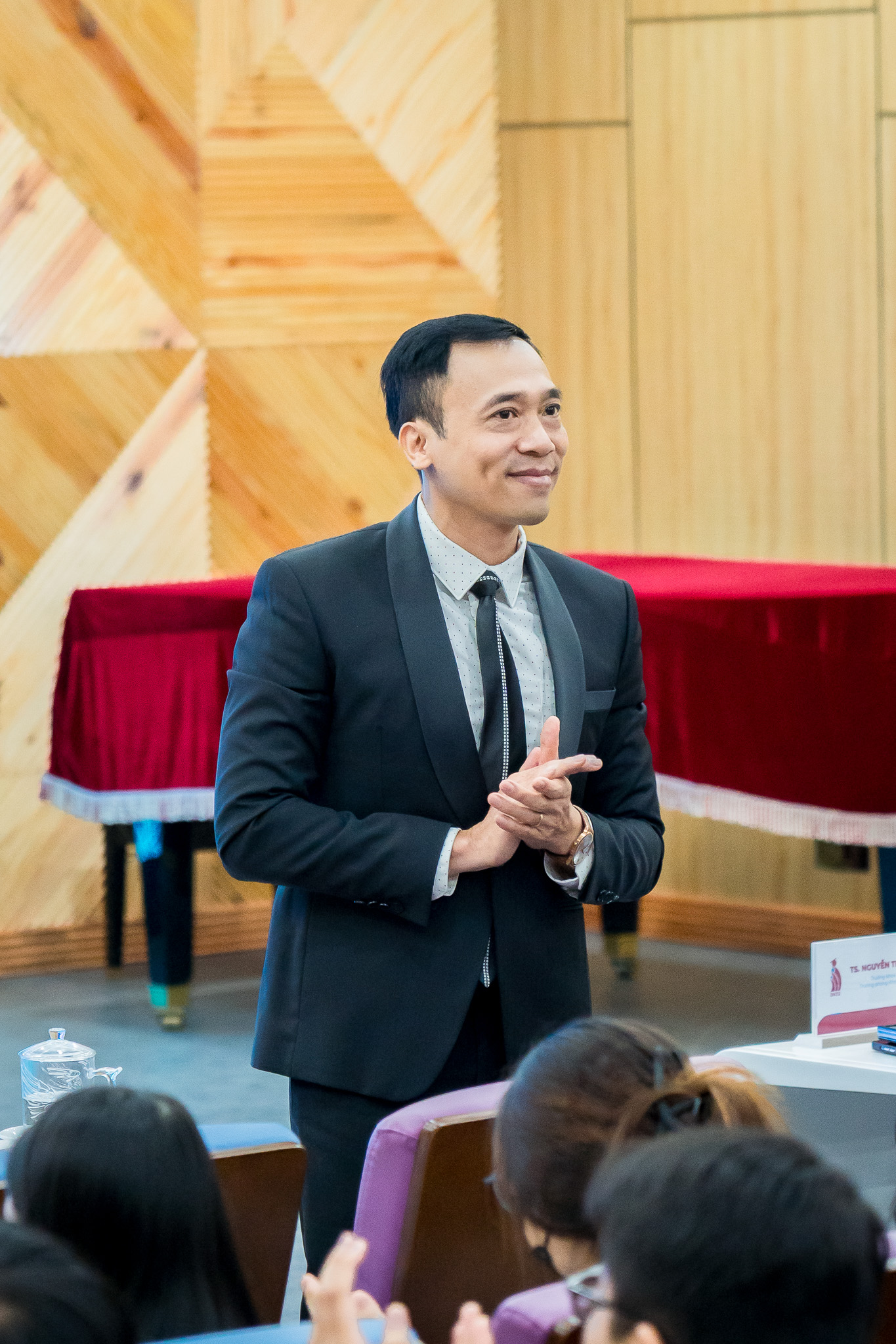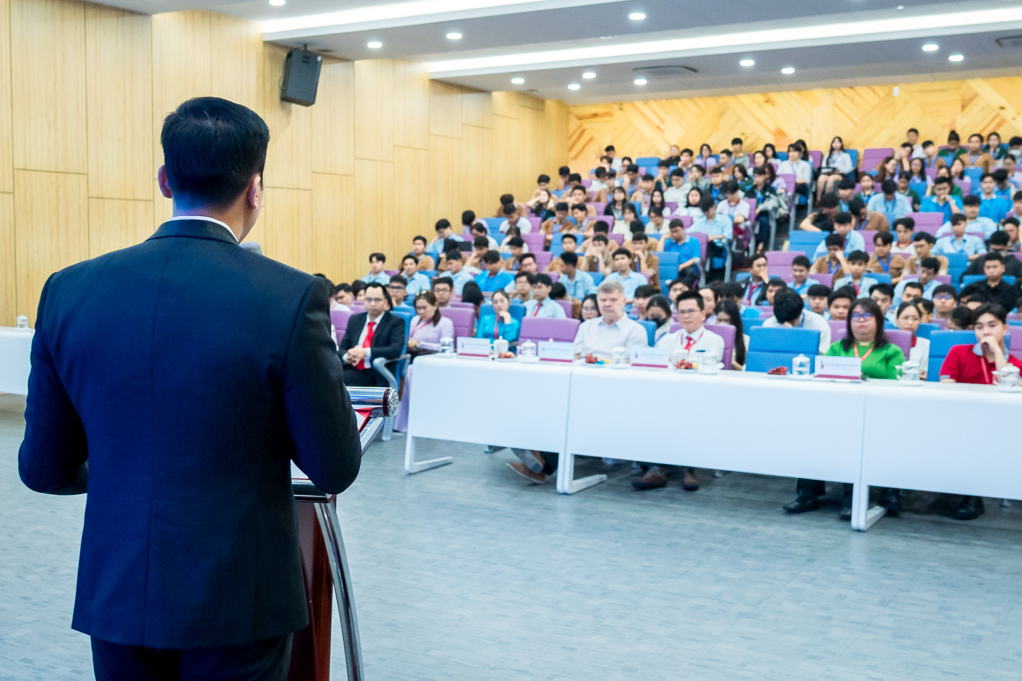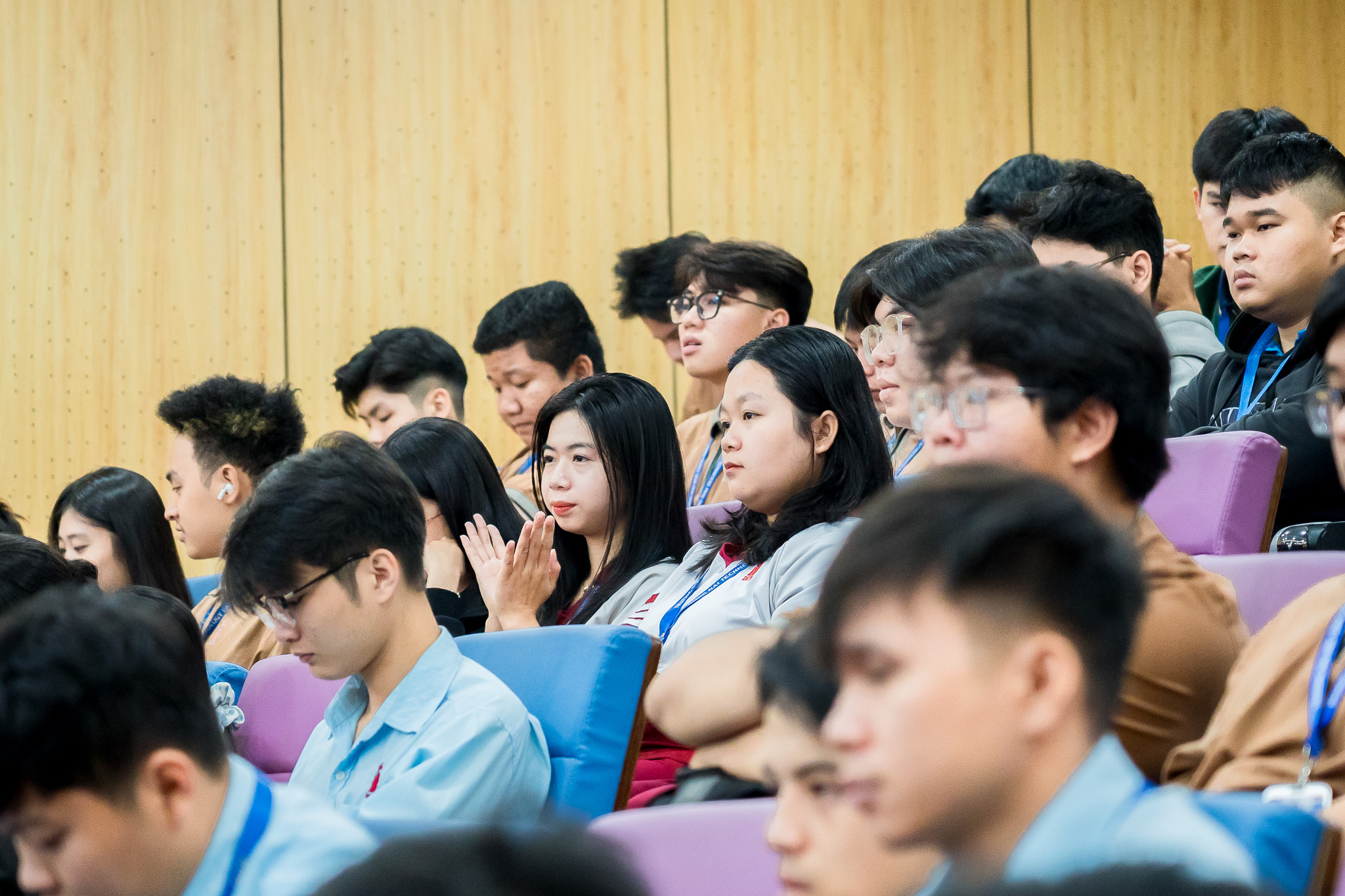 Sau hai tham luận chuyên sâu, phiên thảo luận - hỏi đáp diễn ra sôi nổi với sự tham gia tích cực của giảng viên và sinh viên. Đặc biệt, BS. Nguyễn Như Thạch - Giám đốc phòng khám đa khoa Nam Thành Phát đã gợi mở thêm góc nhìn liên ngành về các vấn đề sức khỏe nghề nghiệp trong môi trường làm việc gắn liền với máy móc và thiết bị kỹ thuật, qua đó góp phần làm phong phú nội dung thảo luận và mở rộng cách tiếp cận toàn diện đối với phát triển bền vững. Đây là không gian học thuật mở, nơi các vấn đề nghiên cứu, ứng dụng và định hướng phát triển tiếp tục được làm rõ thông qua trao đổi trực tiếp với các diễn giả, góp phần tăng cường kết nối tri thức và truyền cảm hứng nghiên cứu cho sinh viên.
