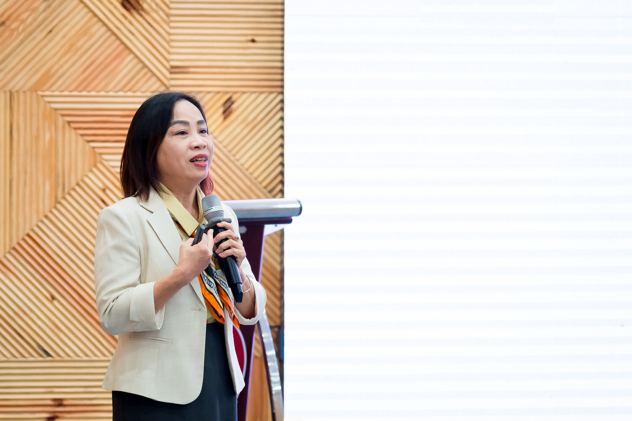 Phiên tham luận thứ hai, TS. Nguyễn Lan Hương tiếp cận vấn đề từ góc nhìn kỹ thuật ứng dụng và quản lý vận hành, nhấn mạnh máy nâng chuyển là yếu tố hạ tầng then chốt quyết định hiệu quả hoạt động của hệ thống cảng và logistics hiện đại. Tham luận phân tích sâu tác động của lựa chọn công nghệ, tự động hóa và tối ưu hóa thiết bị nâng chuyển đối với năng suất khai thác, mức tiêu thụ năng lượng, an toàn lao động và khả năng giảm phát thải.