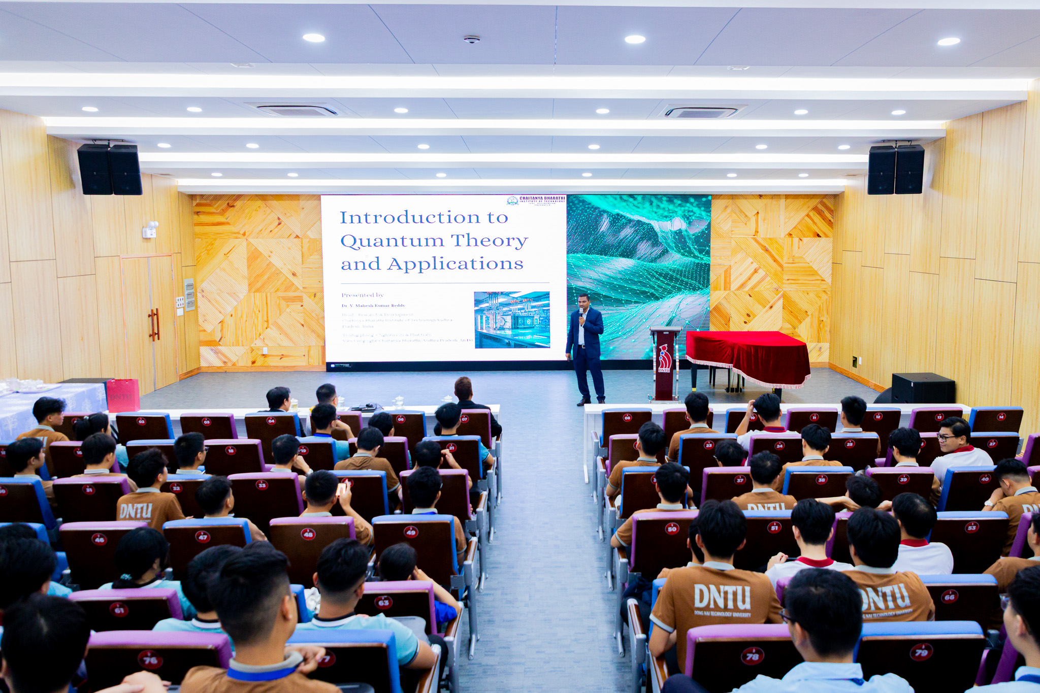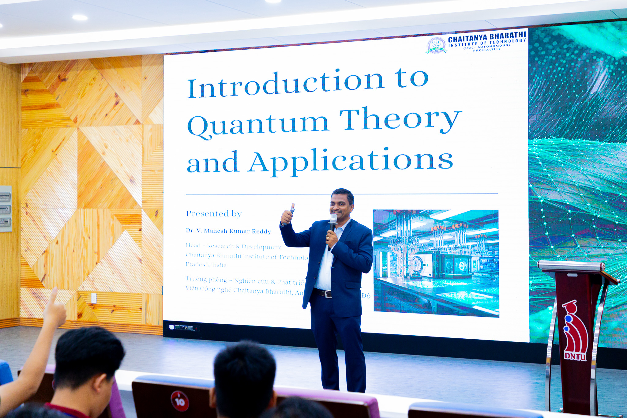 Thông qua phần trình bày chi tiết của mình, Giáo sư Mahesh Kumar Reddy đã chia sẻ nhiều góc nhìn thực tiễn về ứng dụng AI trong công nghệ lượng tử. Giáo sư cũng bày tỏ sự ấn tượng sâu sắc trước thái độ học tập nghiêm túc và tinh thần sáng tạo của sinh viên DNTU, đồng thời khẳng định đây chính là nền tảng quan trọng để phát triển nguồn nhân lực chất lượng cao trong bối cảnh hội nhập toàn cầu.
