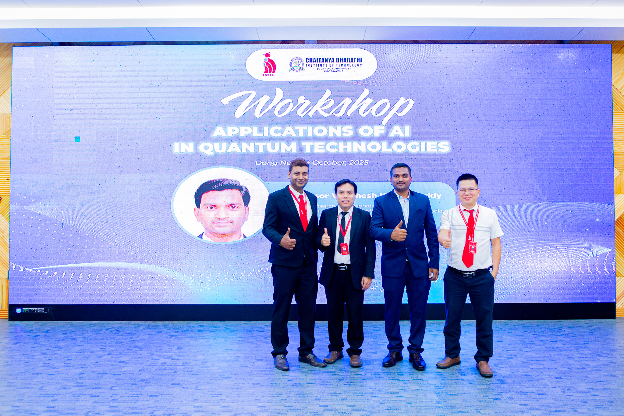 Trong khuôn khổ hợp tác quốc tế giữa Trường Đại học Công nghệ Đồng Nai và Trường Công nghệ CBIT (Ấn Độ), chiều ngày 31/10/2025, Giáo sư V. Mahesh Kumar Reddy - Trưởng Phòng Nghiên cứu & Phát triển, Trường CBIT đã trực tiếp tham gia và dẫn dắt Workshop “Applications of AI in Quantum Technologies” tại DNTU.
