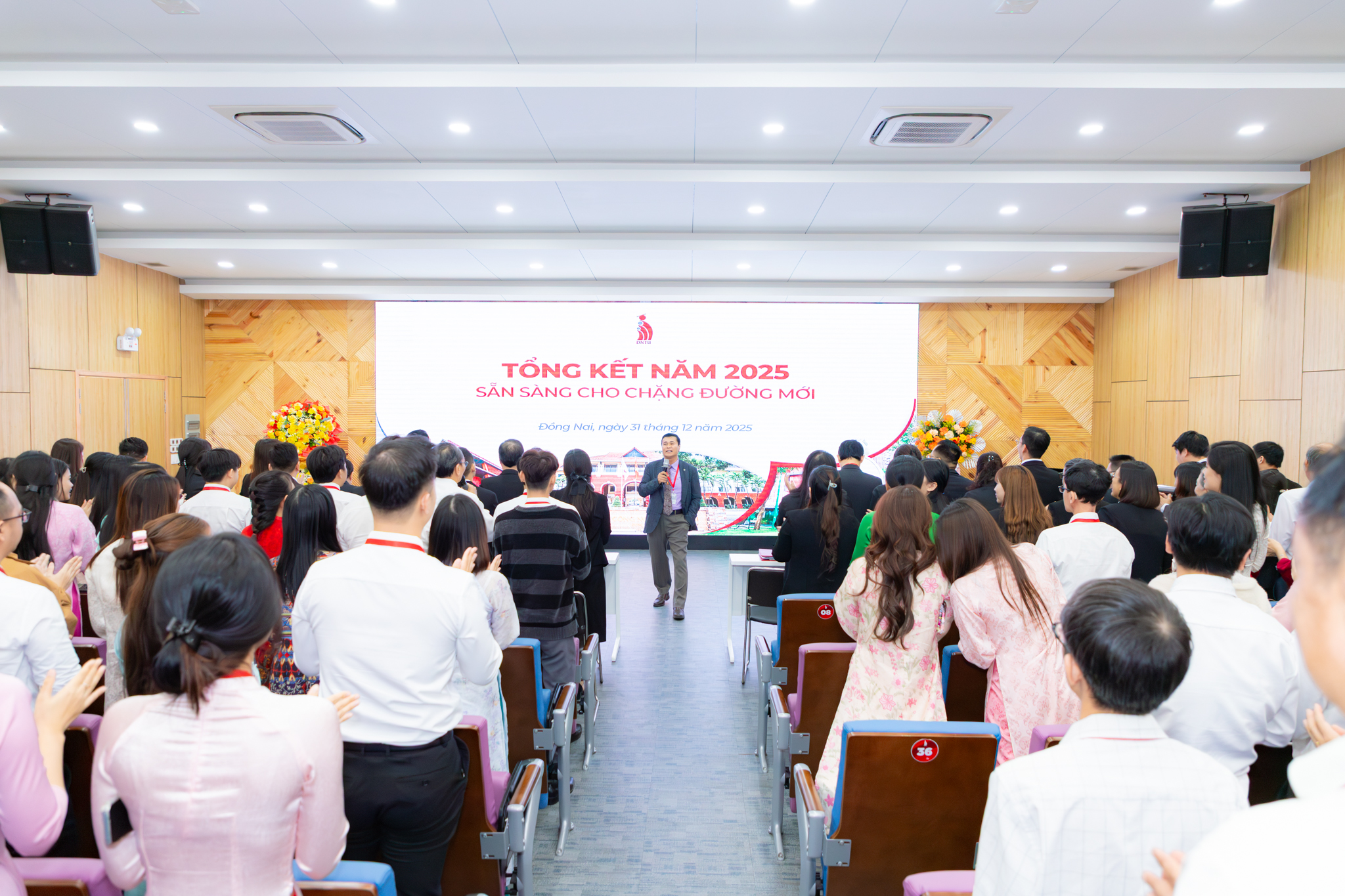 Buổi họp mặt khép lại trong không khí xúc động khi đại gia đình DNTU cùng hòa giọng trong ca khúc truyền thống “Hành khúc Trường Đại học Công nghệ Đồng Nai”, thể hiện tinh thần đoàn kết và niềm tự hào về mái trường thân yêu.
