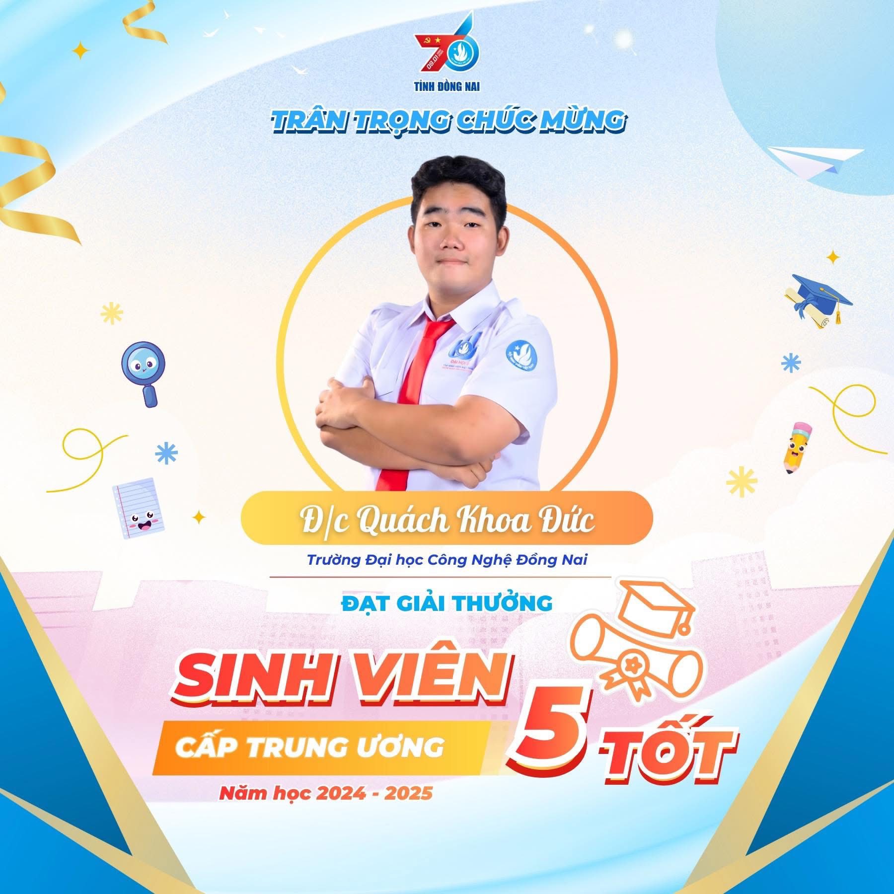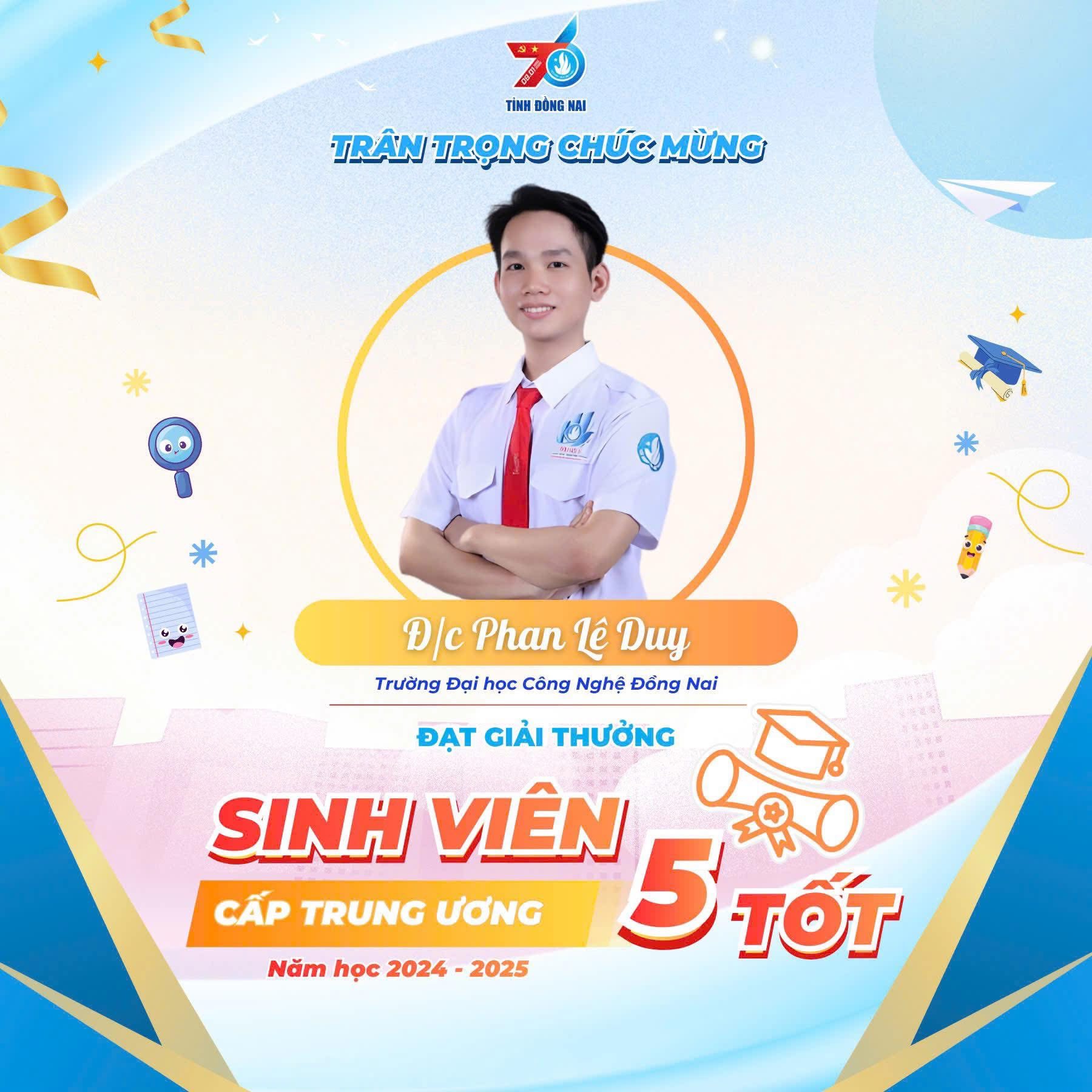 Những thành tích đạt được là kết quả của quá trình phấn đấu bền bỉ, rèn luyện toàn diện trên các tiêu chí đạo đức – học tập – thể lực – tình nguyện – hội nhập, đồng thời phản ánh rõ nét chất lượng đào tạo, môi trường học tập tích cực và các phong trào sinh viên ngày càng phát triển tại Trường Đại học Công nghệ Đồng Nai.