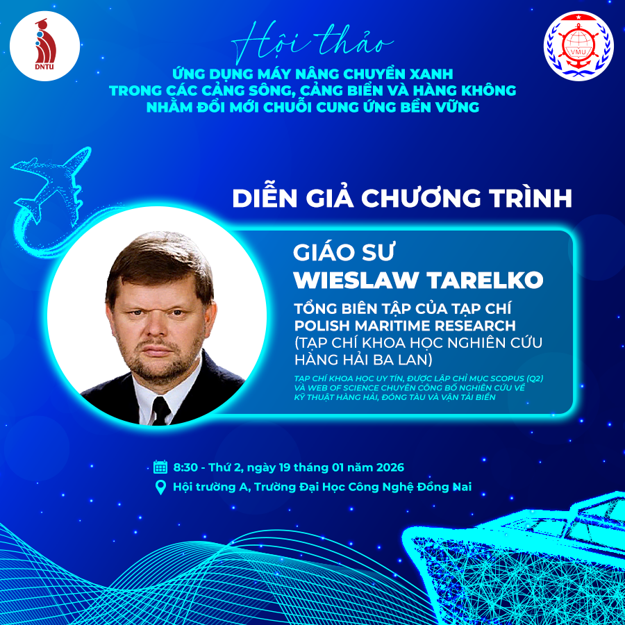 Nhằm mở rộng góc nhìn học thuật và tăng cường kết nối giữa nghiên cứu và thực tiễn, Trường Đại học Công nghệ Đồng Nai tổ chức hội thảo với chủ đề: “Ứng dụng máy nâng chuyển xanh trong các cảng sông, cảng biển và hàng không nhằm đổi mới chuỗi cung ứng bền vững.”