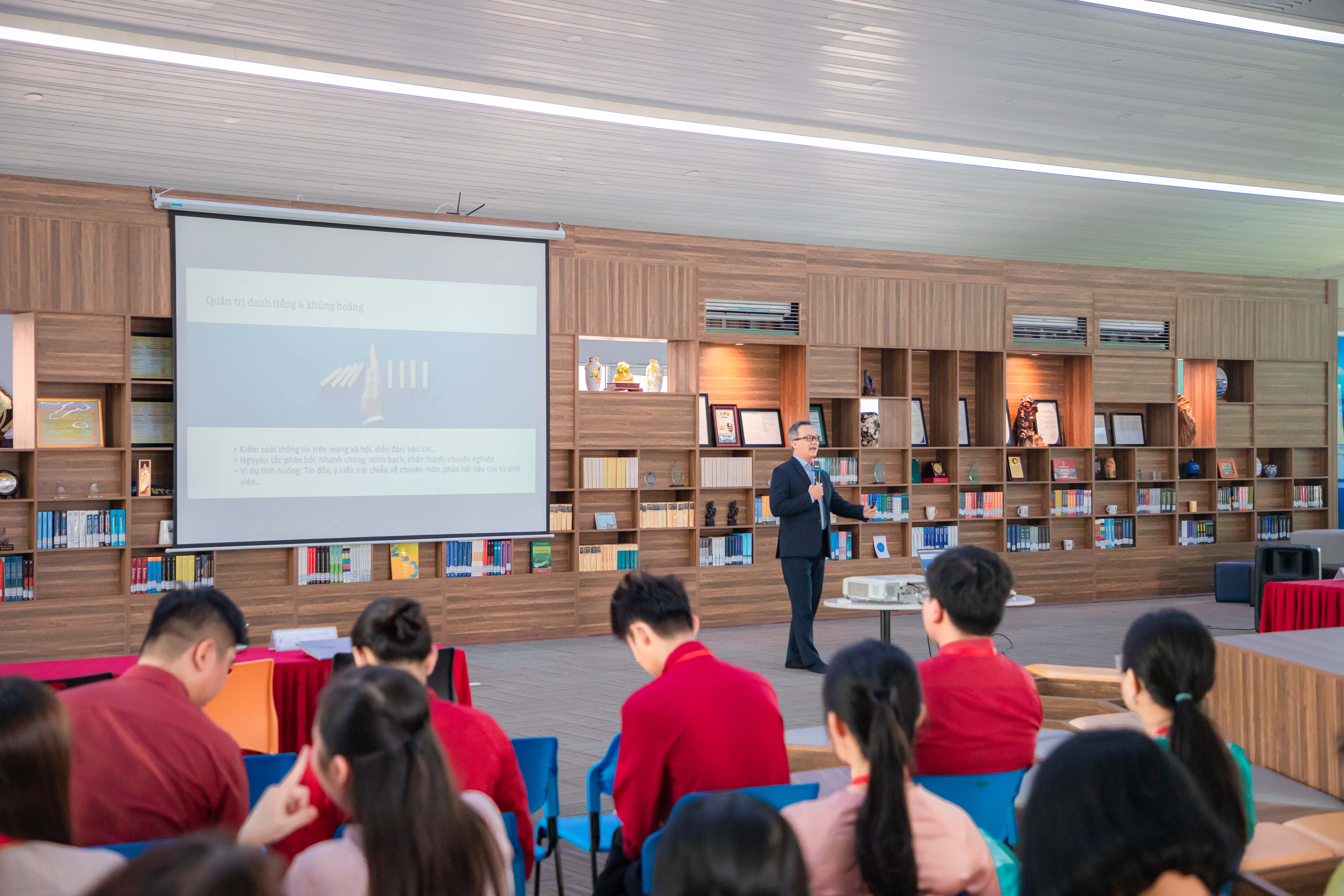 Phát triển bền vững không chỉ bắt nguồn từ những mục tiêu lớn, mà được nuôi dưỡng mỗi ngày từ tinh thần trách nhiệm và sự ghi nhận lẫn nhau trong tập thể. Chính nền tảng nhân sự vững mạnh và văn hóa tổ chức nhân văn ấy là cam kết rõ ràng dành cho học sinh, sinh viên và phụ huynh. Người học có thể yên tâm rằng mình đang được đồng hành bởi một tập thể hùng hậu, trách nhiệm và tận tâm trong từng hoạt động học tập.